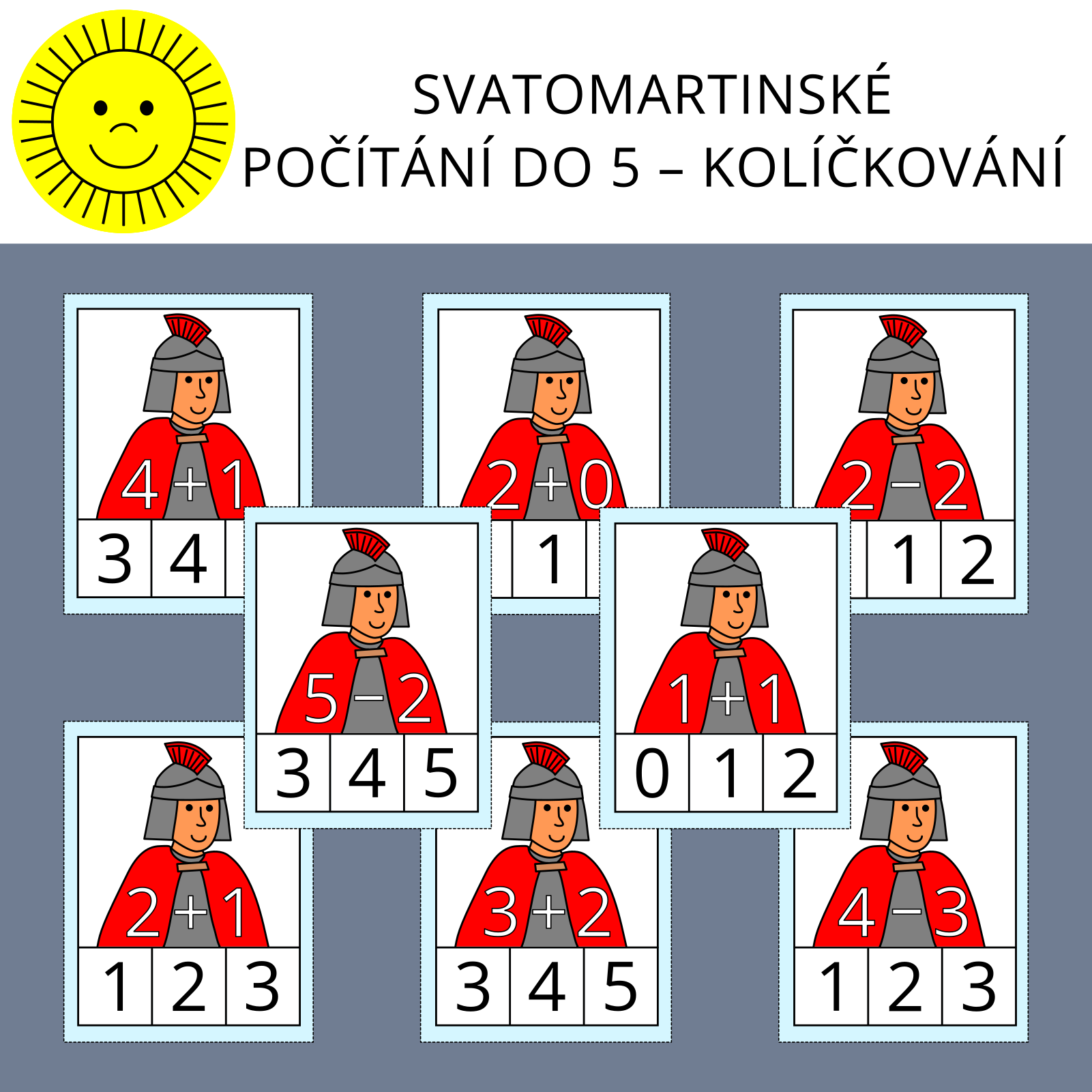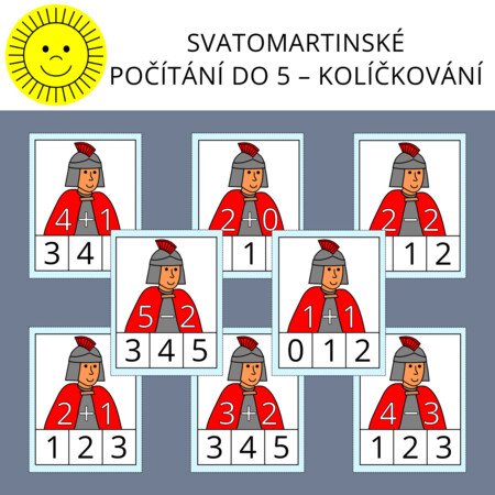 Materiál na téma svatý Martin procvičuje počítání do 5. Obsahuje 32 kartiček.