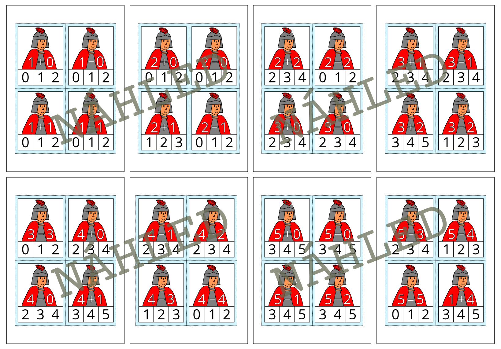 Strany s kartičkami vytiskněte a rozstříhejte. Kartičky můžete zalaminovat. Děti označují kolíčkem výsledek.
