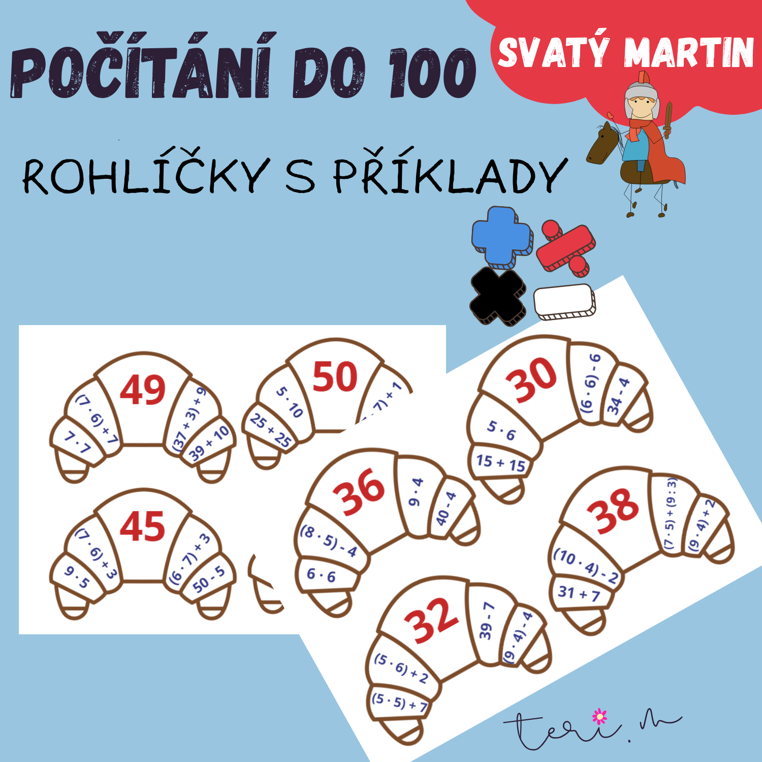 - zábavné procvičování počítání do 100 v tematickém hávu svatého Martina - sčítání, odčítání, násobení, dělení
