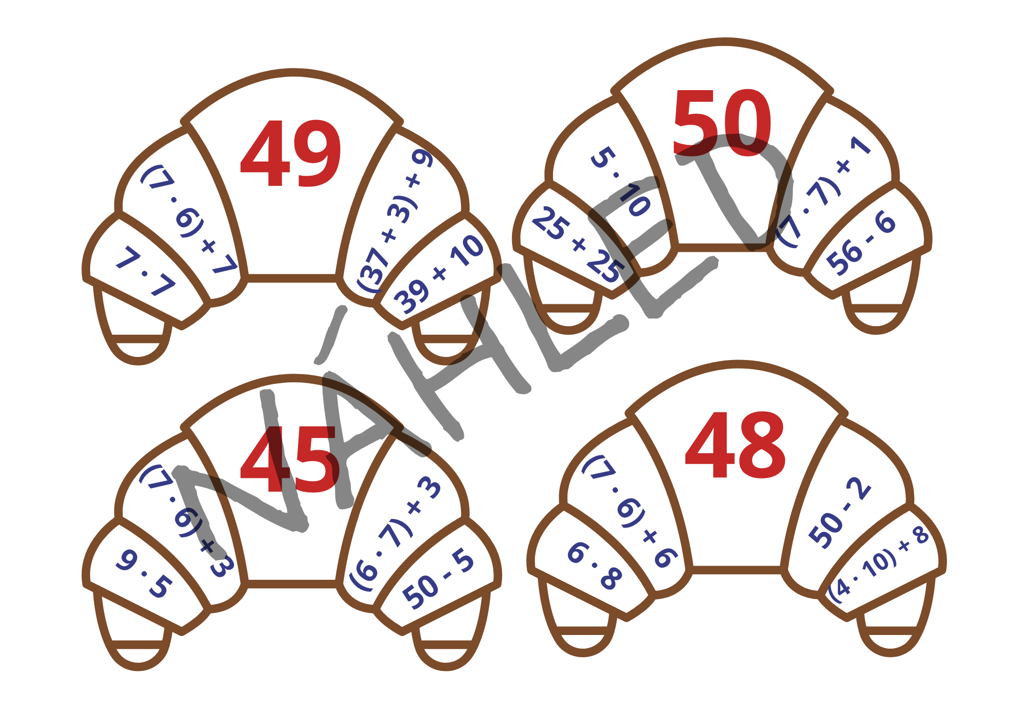 - ke každému rohlíčku 4 příklady, které vedou ke stejnému výsledku