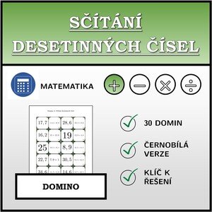 Nejsi si jistý, jak materiály vypadají přímo jako dokument? Stáhni si můj ukázkový materiál a získej představu! Ukázkový materiál najdeš na: https://uciteleucitelum.cz/material/matematika/ukazkovy-material-scitani-do-20-pracovni-list-domino-trimino-pexeso-tetramino.