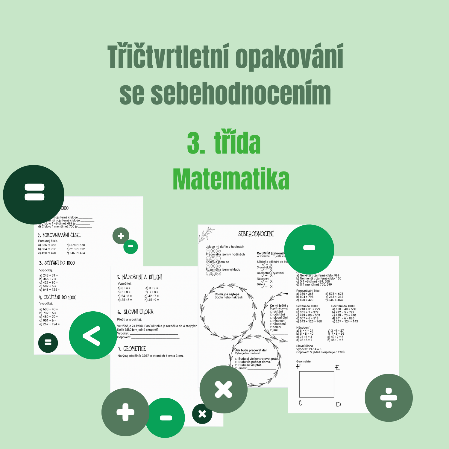 Materiál obsahuje 7 cvičení, která prověří žáky, jak zvládají učivo třetího čtvrtletí 3. třídy, sebehodnotící list. Obsahuje také správné řešení testu.
