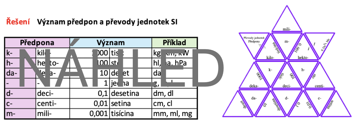 Didaktická hra rozvíjí porozumění převodům a předponám jednotek prostřednictvím praktického procvičování. Žáci si upevňují znalost významu předpony slovem a zároveň si procvičují její číselné vyjádření.