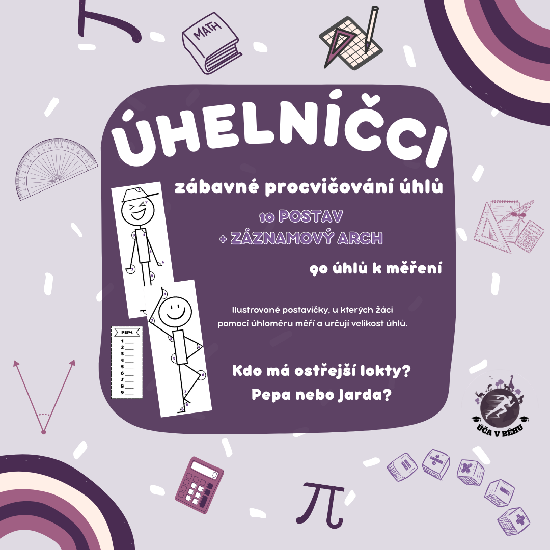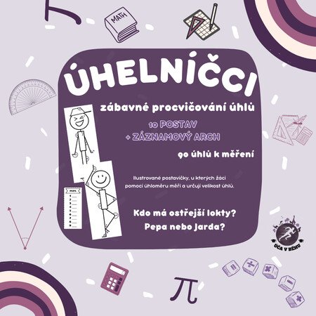 ÚHELNÍČCI jsou zábavnou a praktickou pomůckou pro procvičování měření a určování velikosti úhlů v matematice. Materiál obsahuje 10 ilustrovaných postaviček a záznamový arch, na kterých žáci pomocí úhloměru měří celkem 90 různých úhlů.