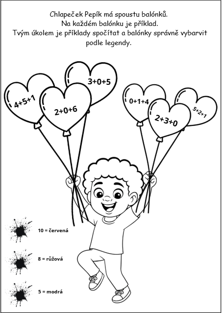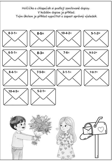 - tematické úlohy – balónky, zamilované dopisy