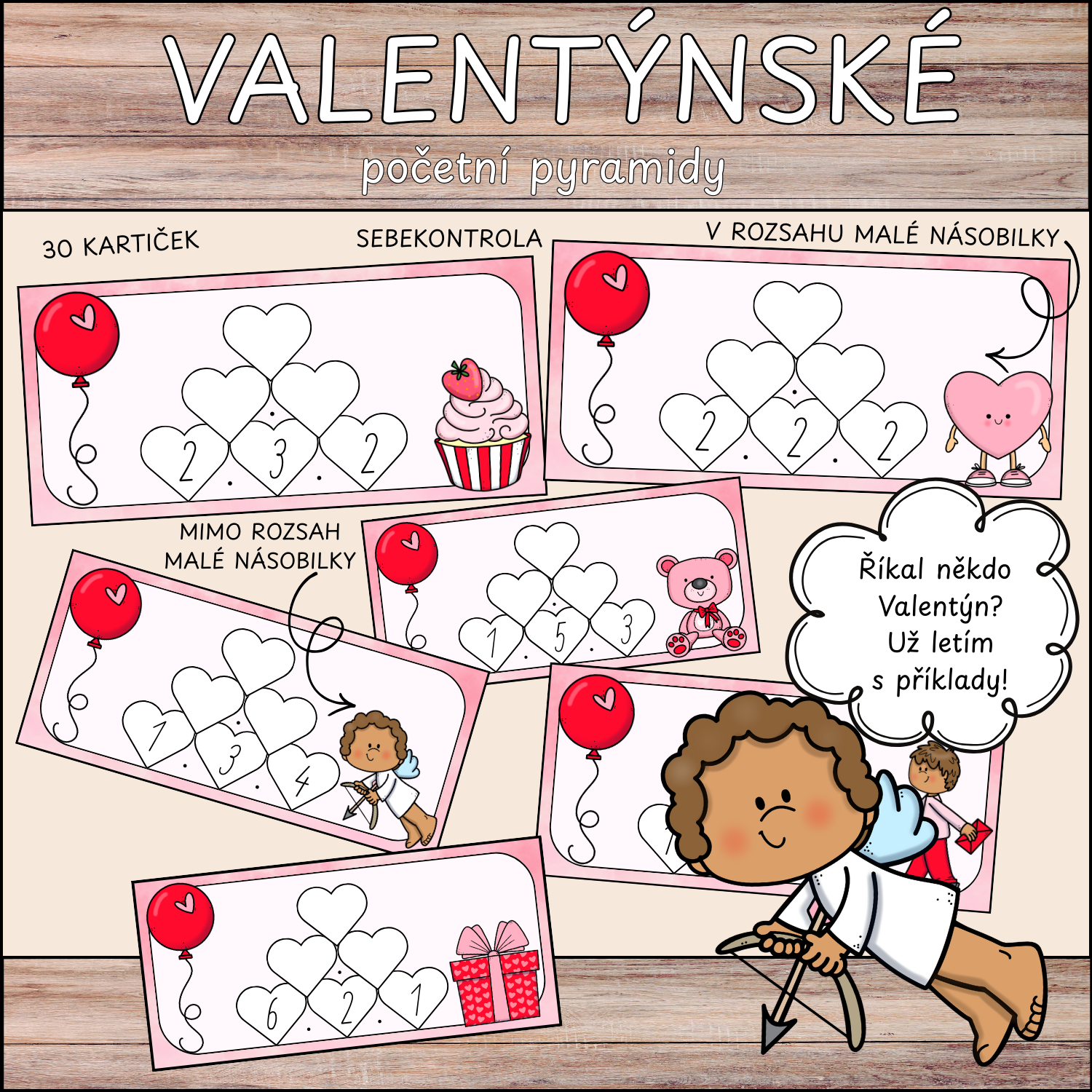 Valentýnské početní pyramidy - násobení v rozsahu i mimo rozsah malé násobilky