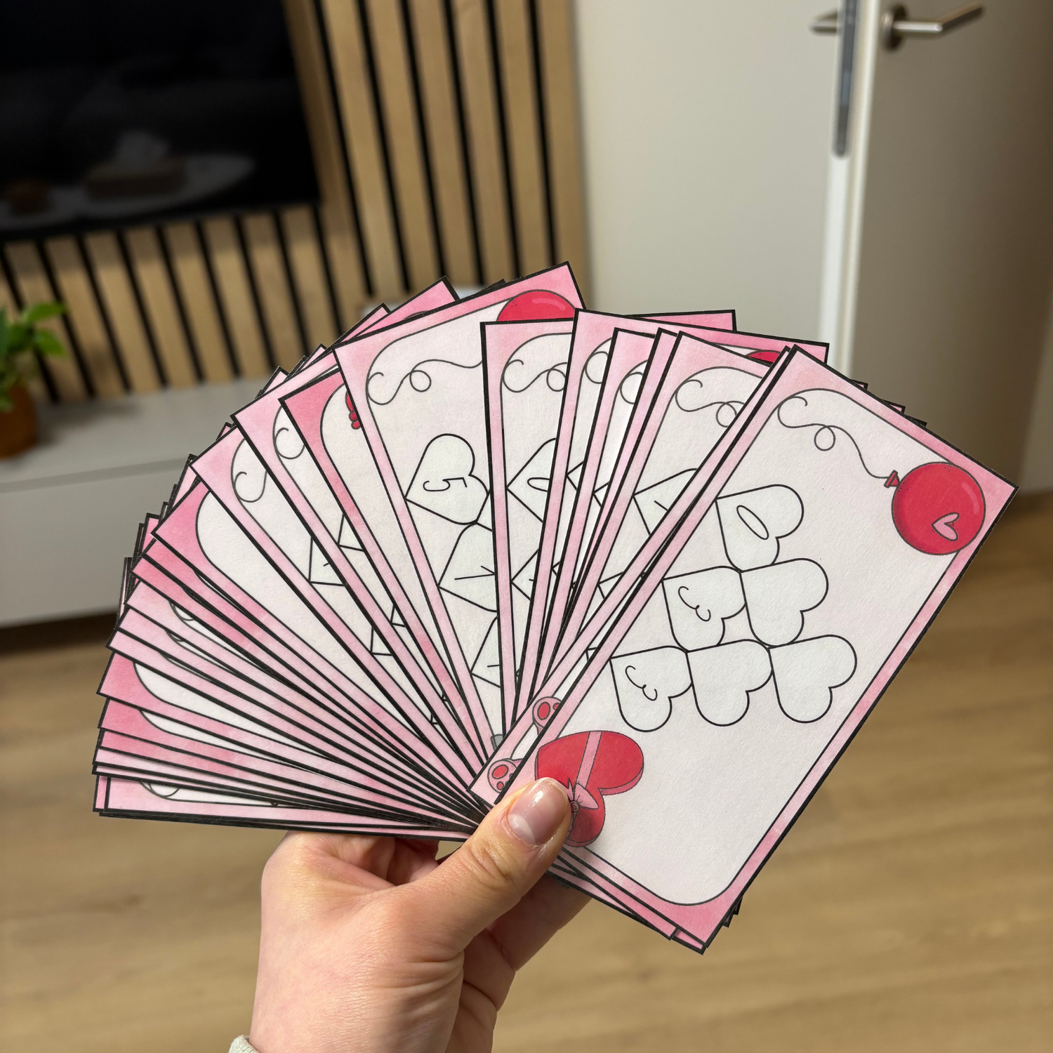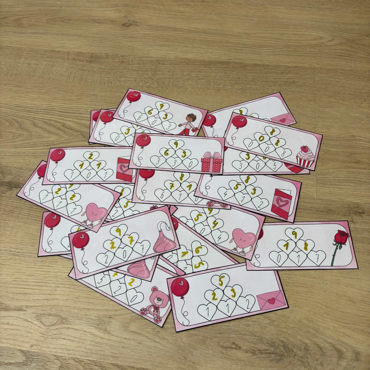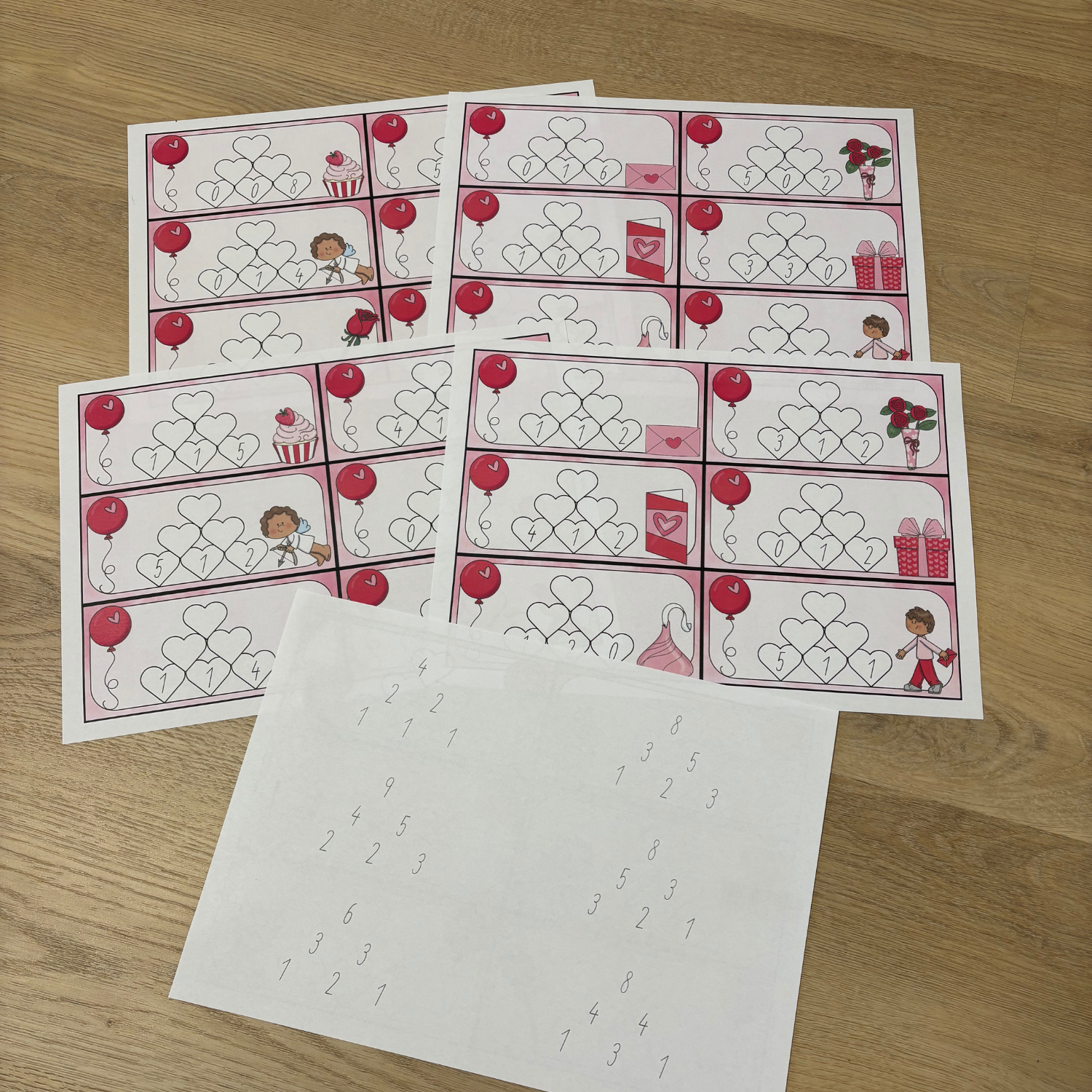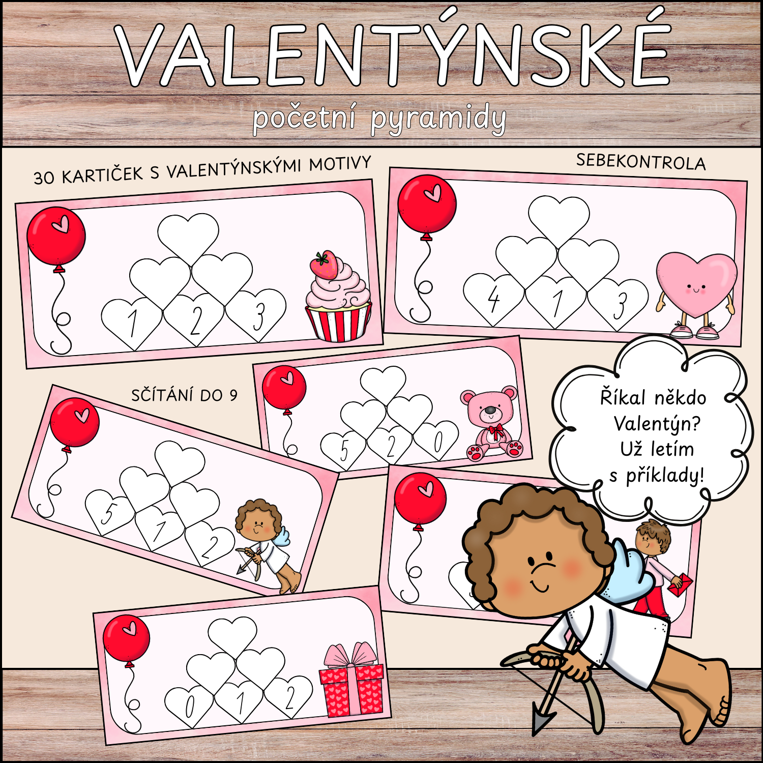 Materiál tvoří třicet tematických kartiček s valentýnskými motivy, na nichž žáci řeší početní pyramidy zaměřené na sčítání do 9. Součástí každé kartičky je sebekontrola na zadní straně, díky níž si žáci mohou své výsledky ihned ověřit.