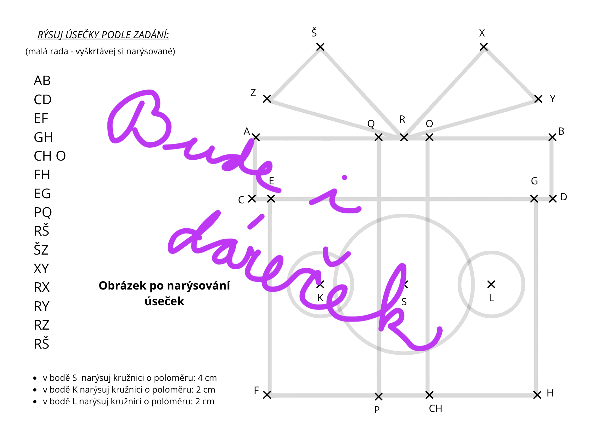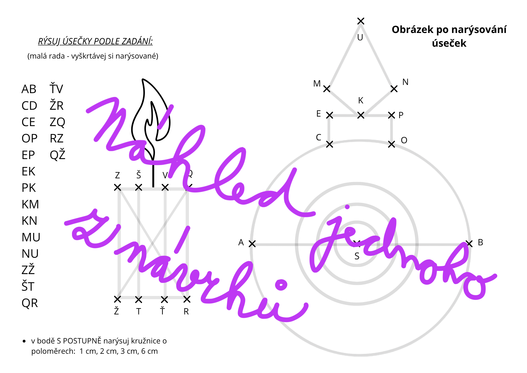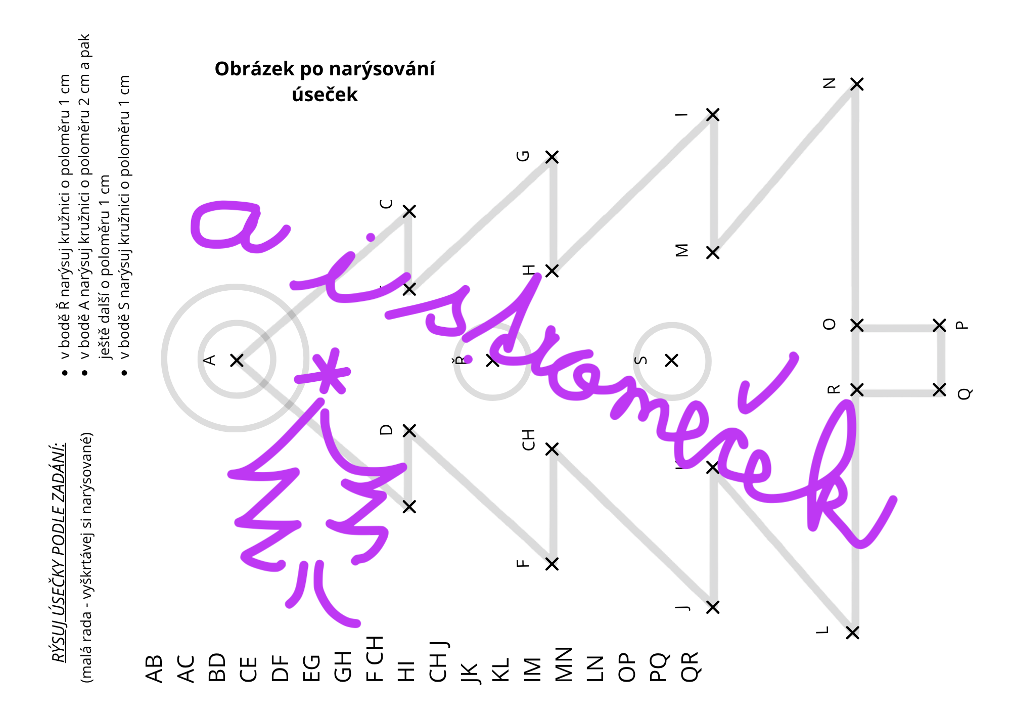 - seznam úseček k narýsování (postupný návod),