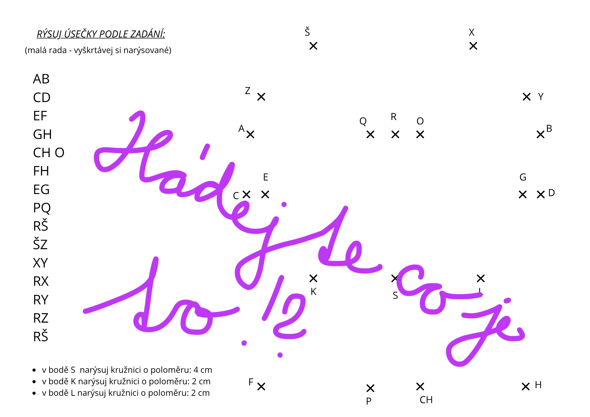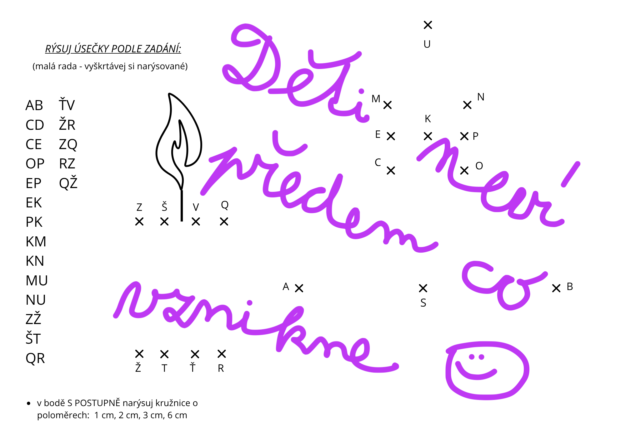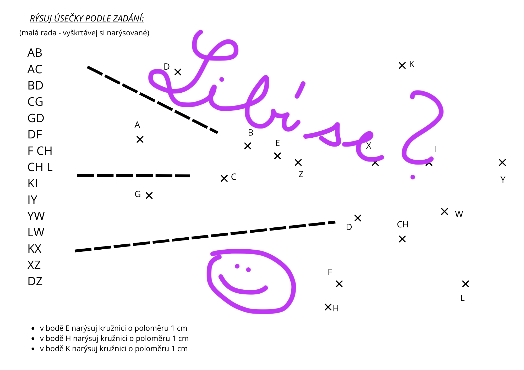 - seznam úseček k narýsování (postupný návod),