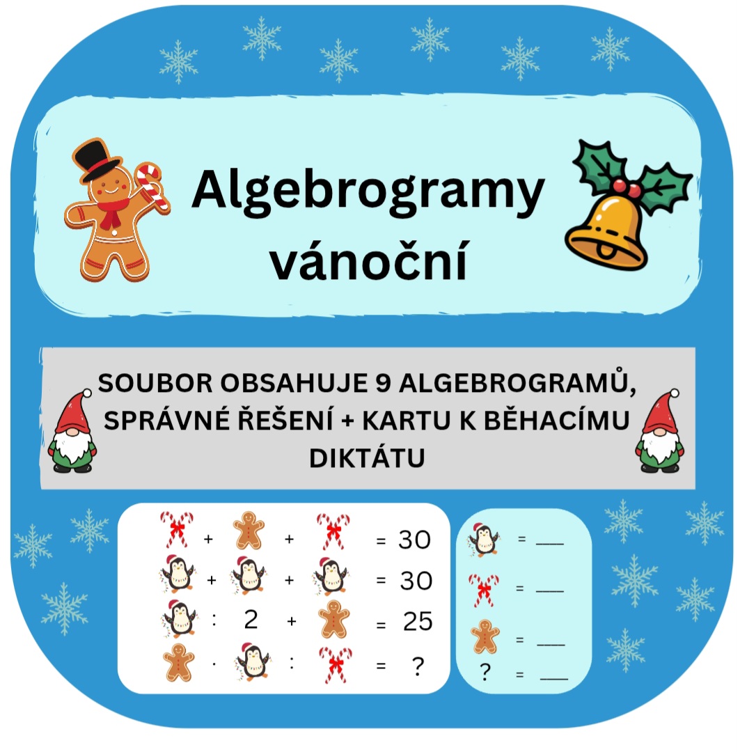 Materiál lze využít jako pracovní listy či běhací diktát. V souboru najdete 9 algebrogramů, správné řešení a kartu k běhacímu diktátu. Ideální pro rozvoj logického a matematického myšlení hravou formou.