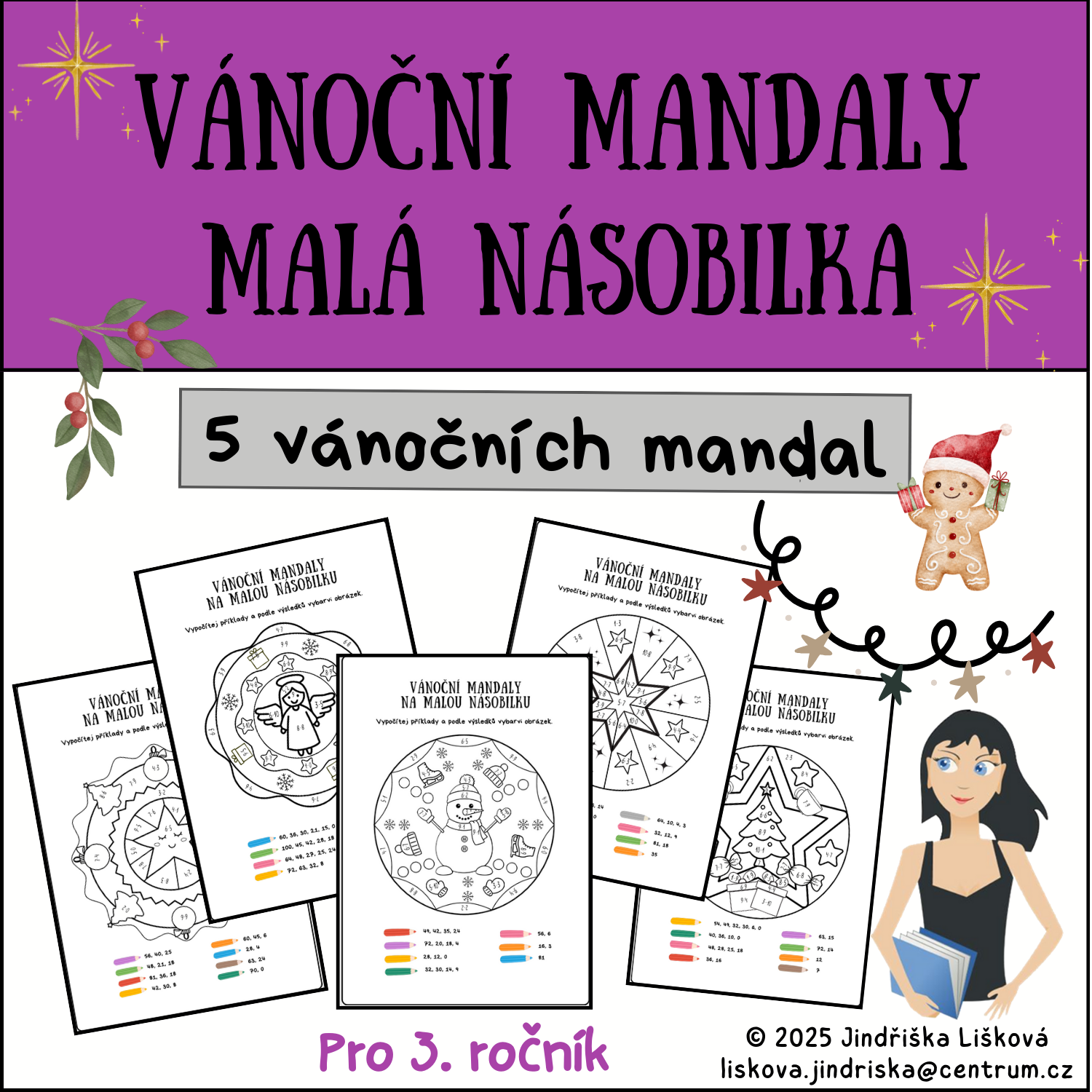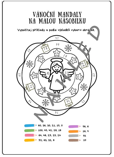 Tento materiál obsahuje 5 vánočních mandal. Každá mandala zahrnuje přibližně 20 - 30 příkladů na malou násobilku.