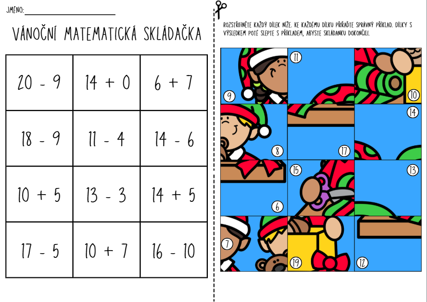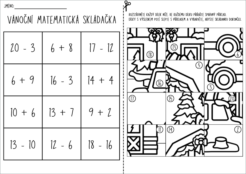 Materiál slouží k zábavnému procvičení a opakování matematiky - sčítání a odčítání do 20 bez a s přechodem přes desítku. žáci příklady vypočítají a složí si obrázek.