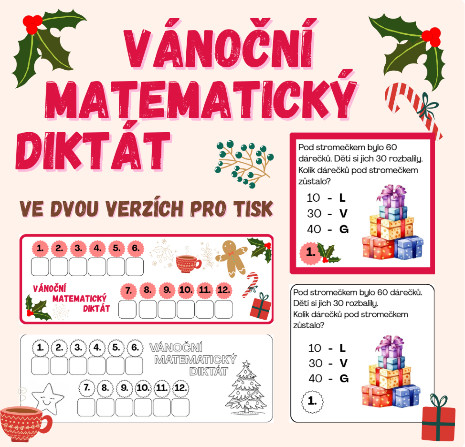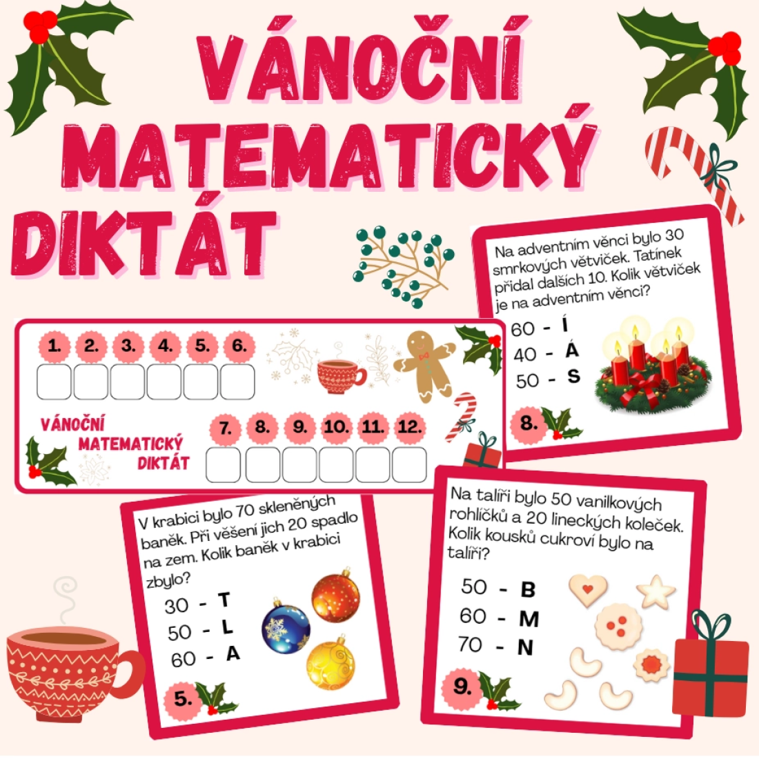 - 13 karet se slovními úlohami zaměřenými na sčítání a odčítání desítek (do 100).