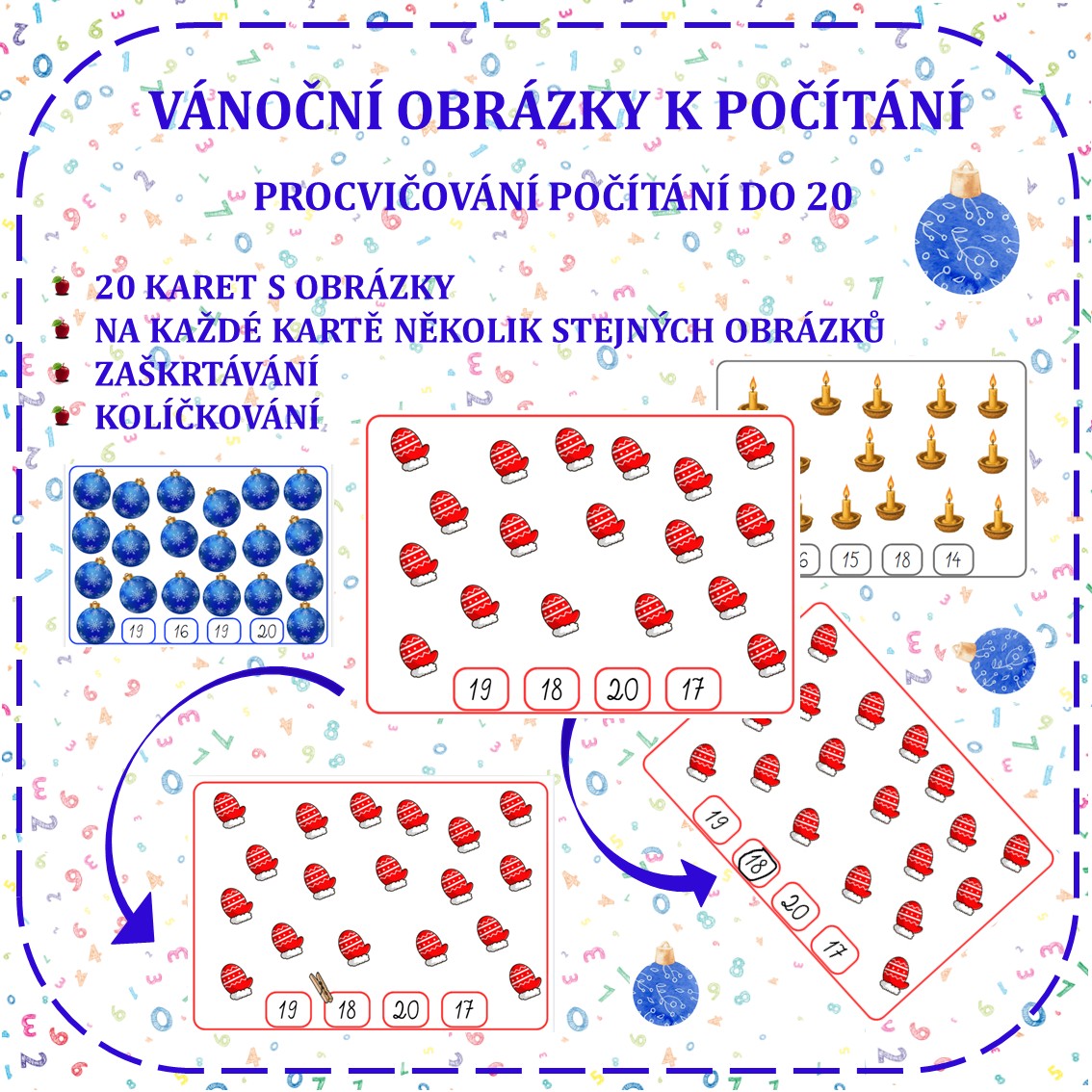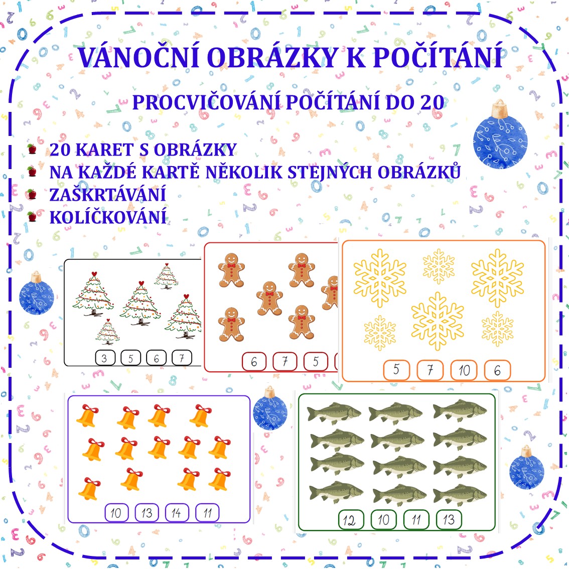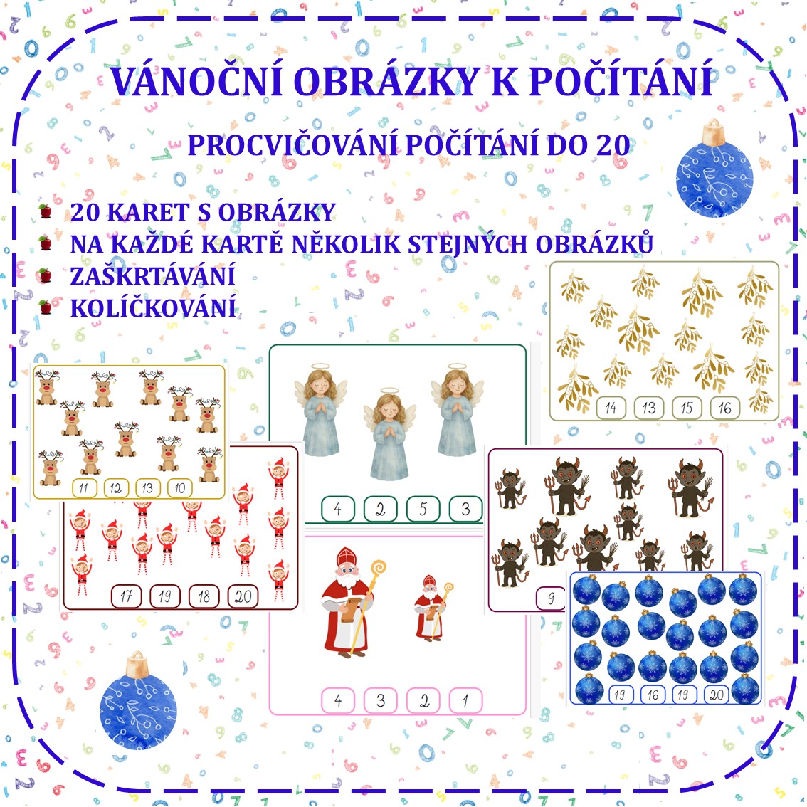 Hravou formou procvičujeme počítání, porovnávání a čtení čísel v zimní a vánoční atmosféře.