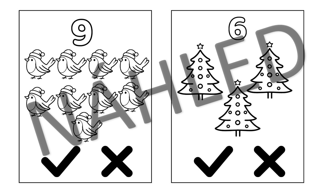 Najdete zde také demonstrační kartičky k přiřazování správného počtu obrázků, vybarvování čísel barvami, počítání a doplňování čísel, spojování stejných čísel či porovnávání pomocí znamének. Děti si například vyzkouší vybarvovat pouze tolik ozdob na stromečku, kolik ukazuje číslovka, nebo doplňovat chybějící čísla v girlandách. Nechybí ani práce s kolíčky, spojování stejné číslovky, určování správné odpovědi a jednoduché sčítání pomocí obrázků.