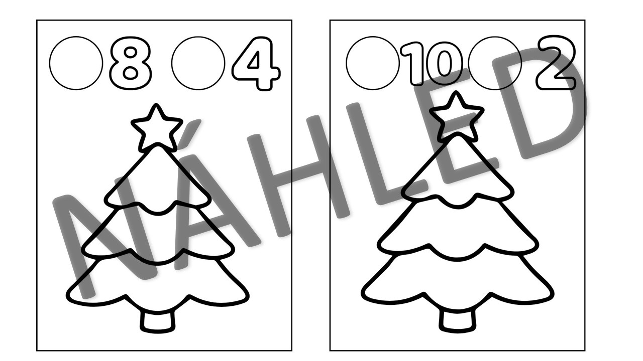 ✔️ vybarvování ozdob podle určeného počtu - 10 kartiček (5 stránek)