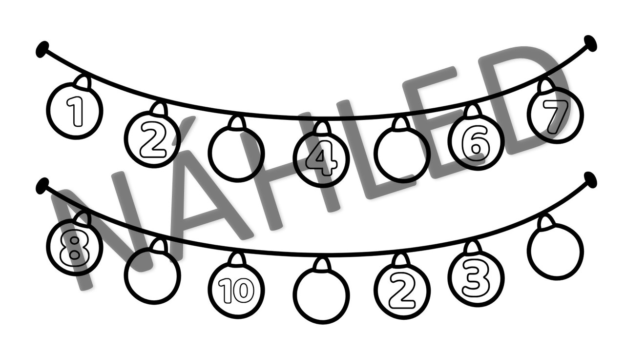 ✔️ barevné ozdoby podle uvedeného počtu - 6 kartiček (3 stránky)