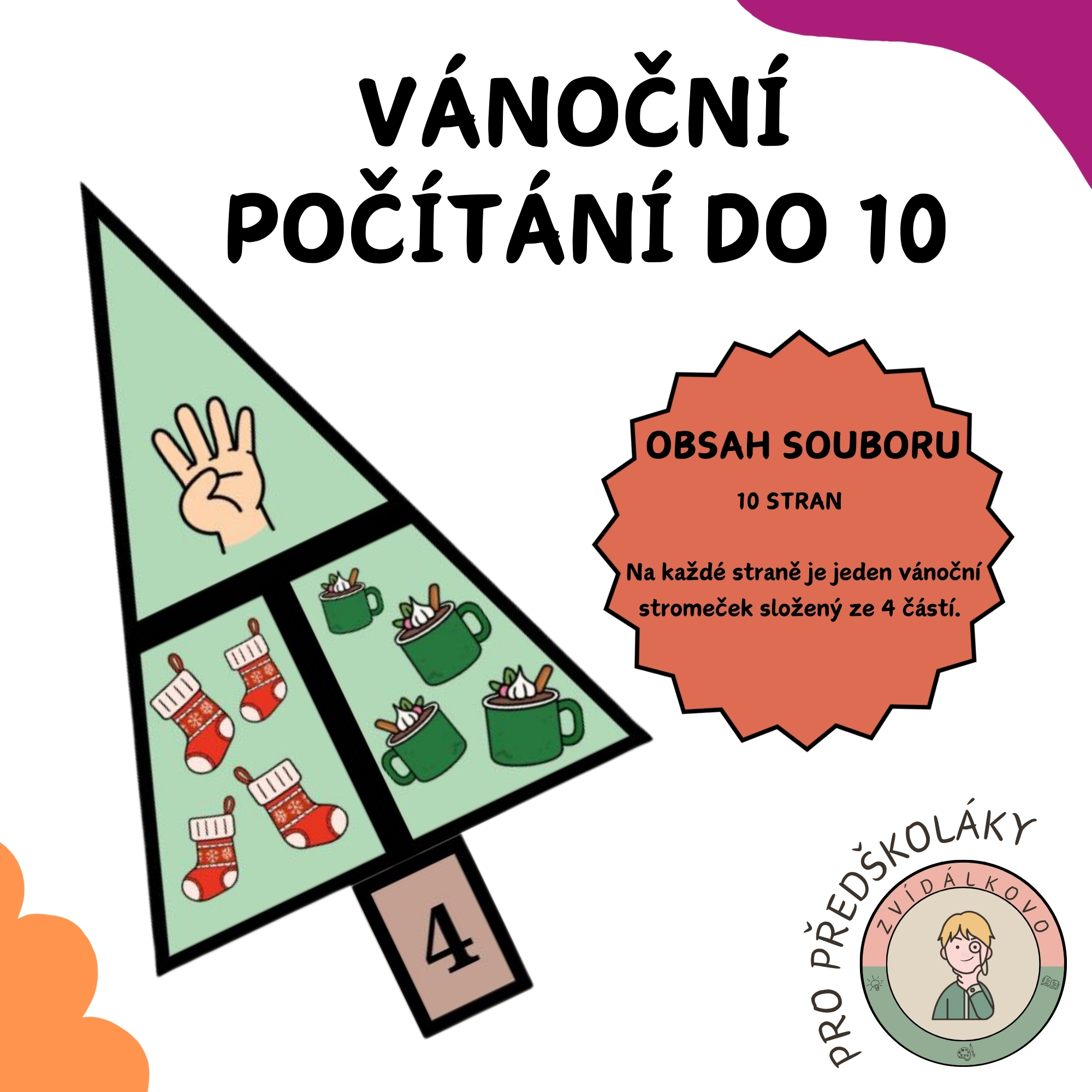 Zvídálkovo Vánoční počítání do deseti je materiál obsahující didaktickou hru, která je vhodná jako aktivita ke stolečku.