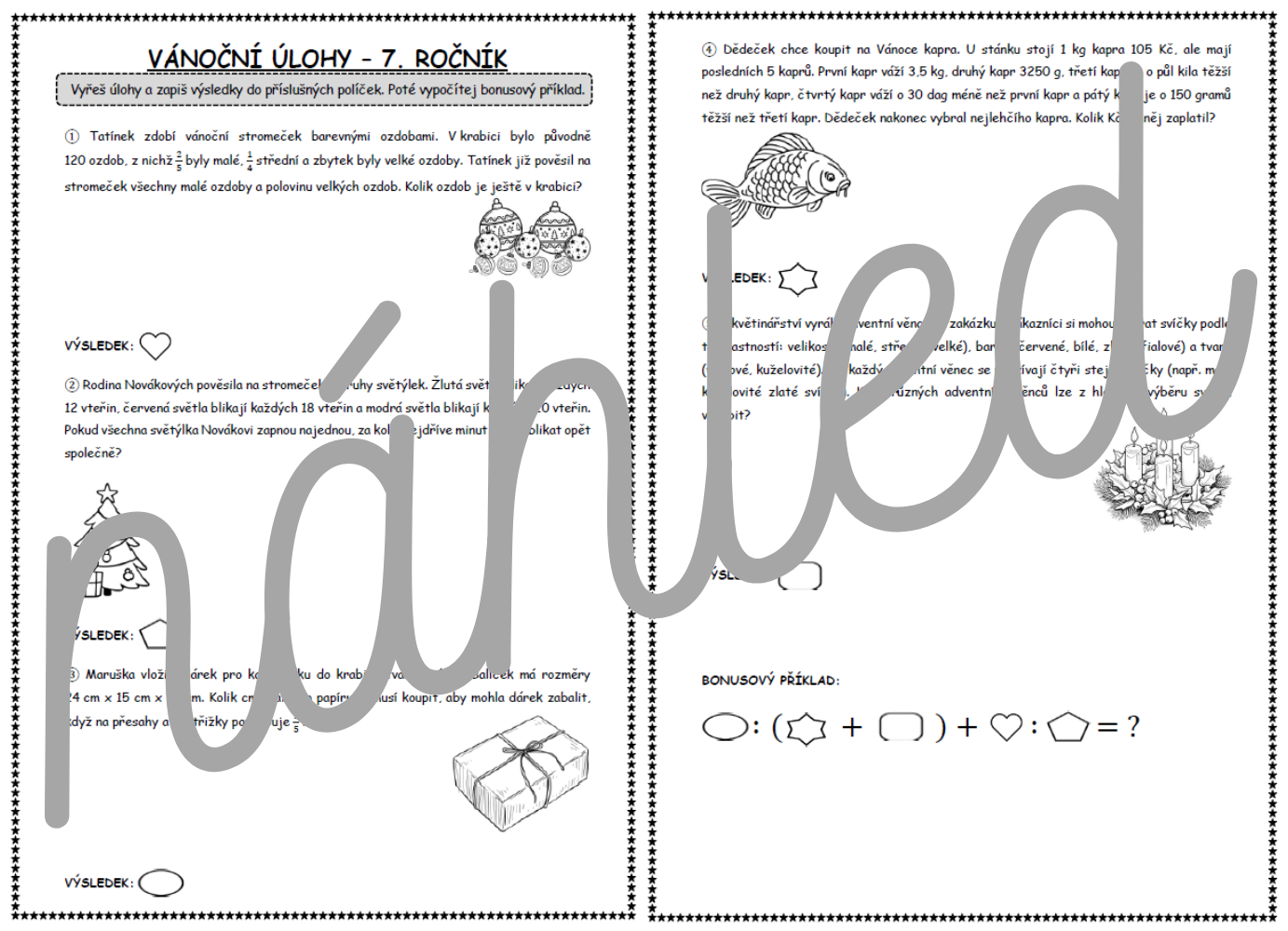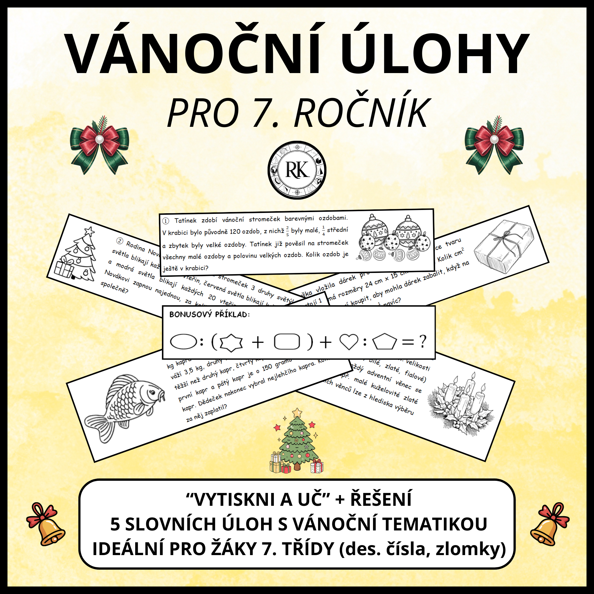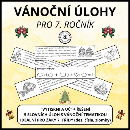 Materiál obsahuje pracovní list - 5 slovních úloh s vánoční tematikou pro žáky 7. ročníku. Součástí jsou výsledky všech úloh. Materiál stačí vytisknout a použít ve výuce.