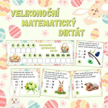 - 14 karet se slovními úlohami zaměřenými na sčítání a odčítání do 100.