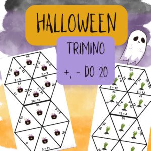 Materiál obsahuje 5 trimin na téma Halloween, které obsahují početní příklady na sčítání a odčítání do 20 s přechodem