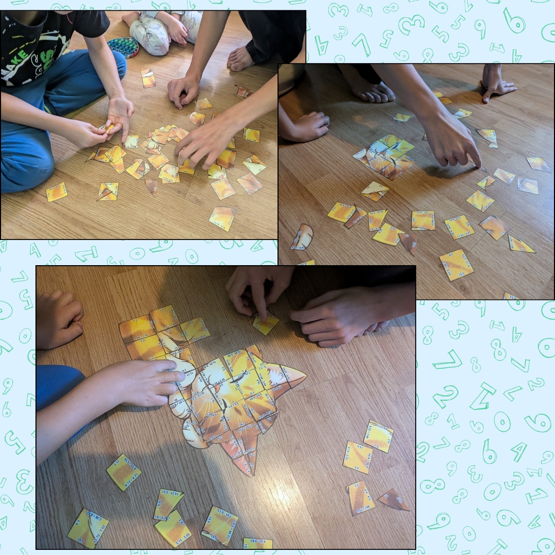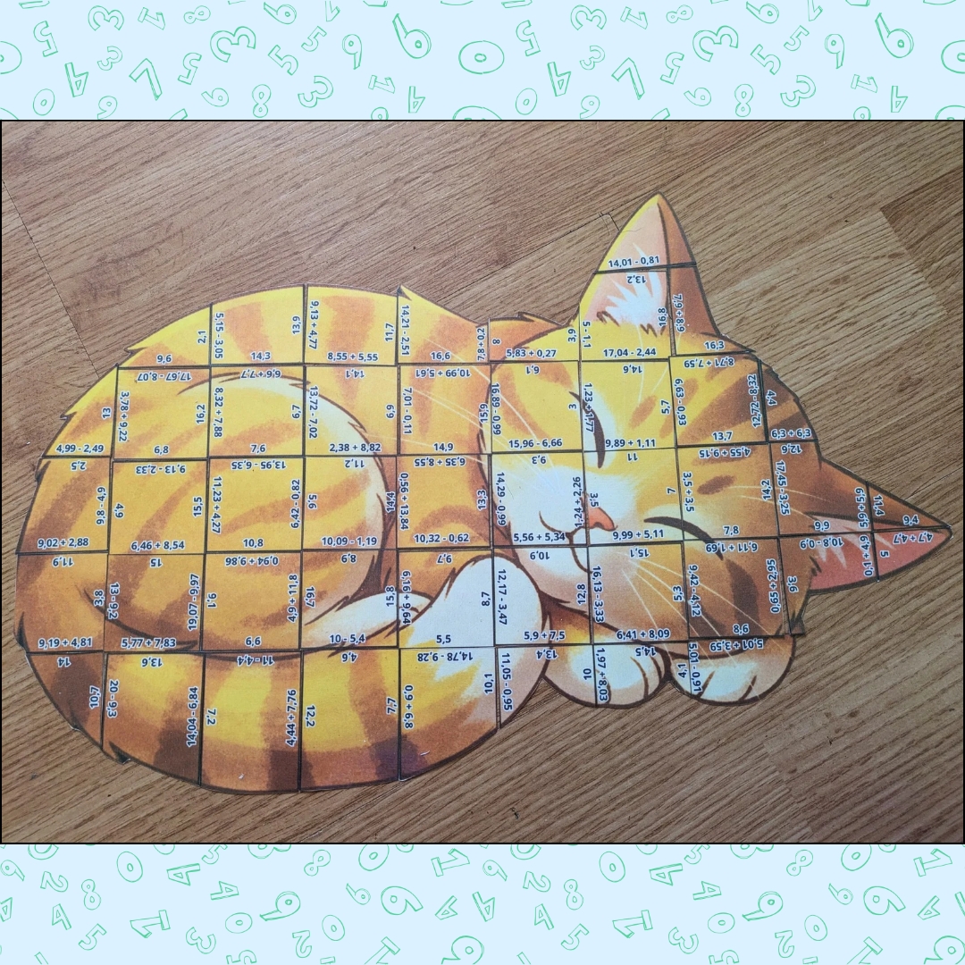 Přiřaďte správné příklady ke správným výsledkům a postupně si poskládáte velký obrázek spící kočičky 🐈⬛🐱