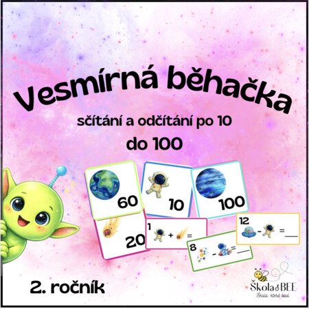 🪐 Vesmírná běhačka – sčítání a odčítání po 10 (do 100)Zábavná pohybová aktivita do matematiky pro žáky 2. ročníku ZŠ, která procvičuje sčítání a odčítání po desítkách v číselném oboru do 100. Děti počítají podle obrázků s vesmírnou tematikou, pohybují se po třídě a učí se přirozeně, bez sezení v lavici.Soubor obsahuje 12 příkladů, u kterých žáci přiřazují hodnoty obrázkům, počítají (+ / −) a zapisují správné výsledky. Aktivita podporuje samostatnost, soustředění, orientaci v číslech a zároveň přináší do hodiny pohyb a radost z učení.Využití ve výuce:matematika – procvičování desítekpráce samostatná / ve dvojicích / ve skupináchvhodné do běžné hodiny, na opakování i jako odlehčená aktivita