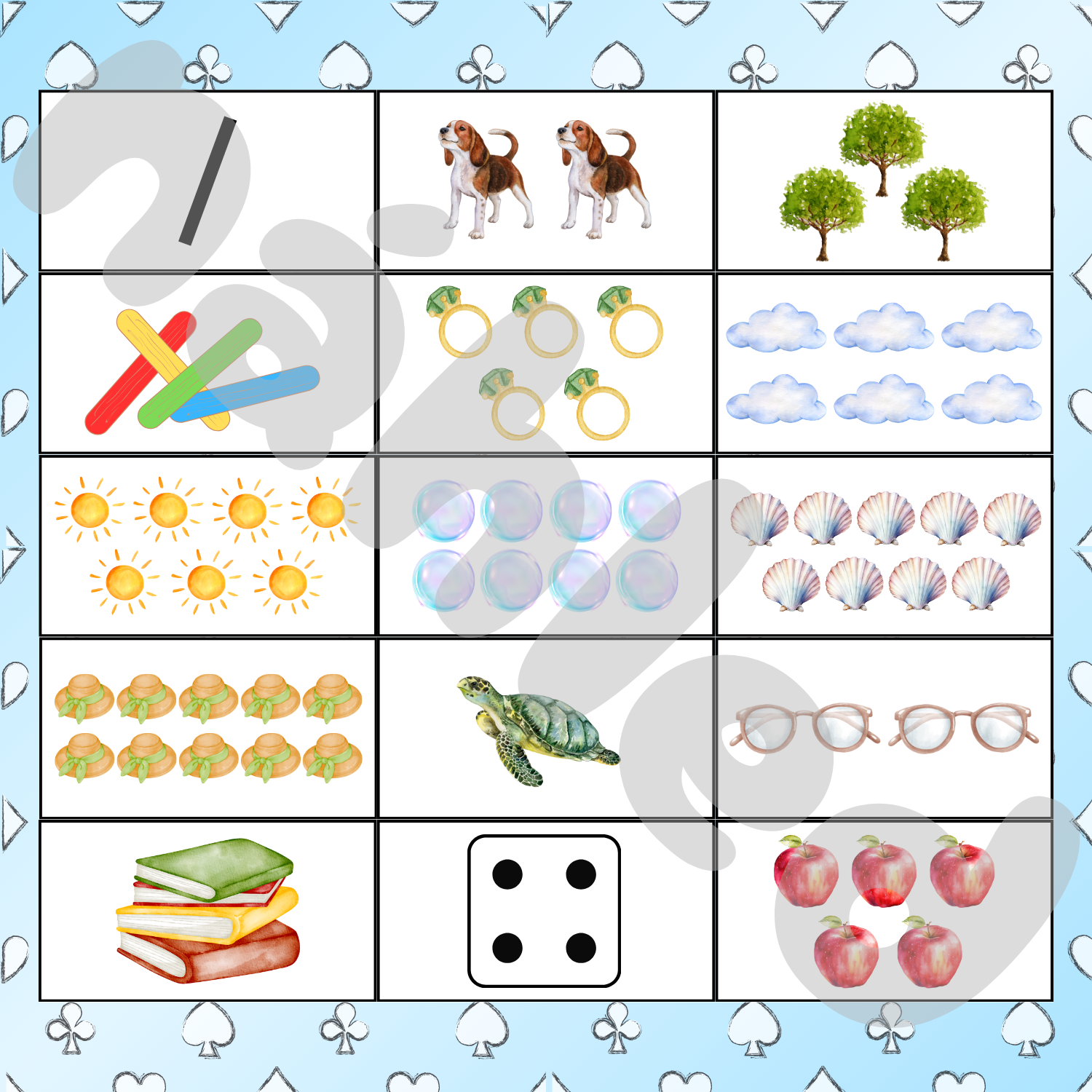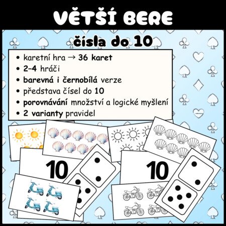 Soubor obsahuje 36 hracích karet s obrázky v různém množství.