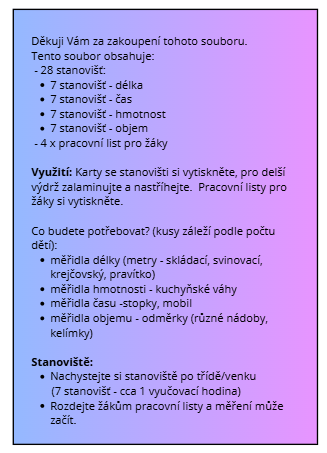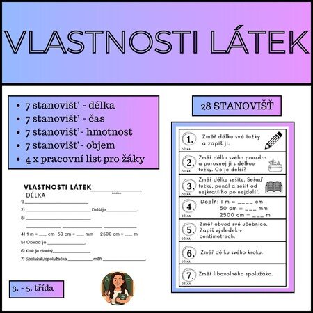 Využití: Karty se stanovišti si vytiskněte, pro delší výdrž zalaminujte a nastříhejte. Pracovní listy pro žáky si vytiskněte.