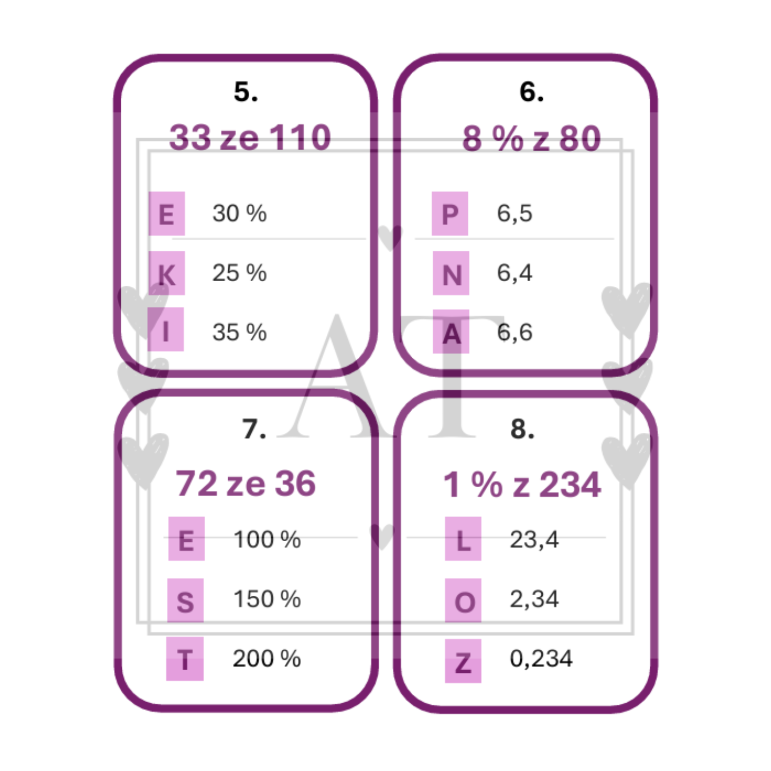 Výpočet procent - běhací hra s tajenkou