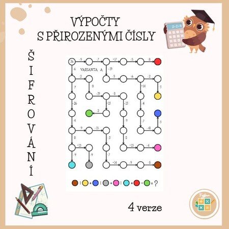 - výsledky z barevných polí dosadí do zašifrovaného příkladu