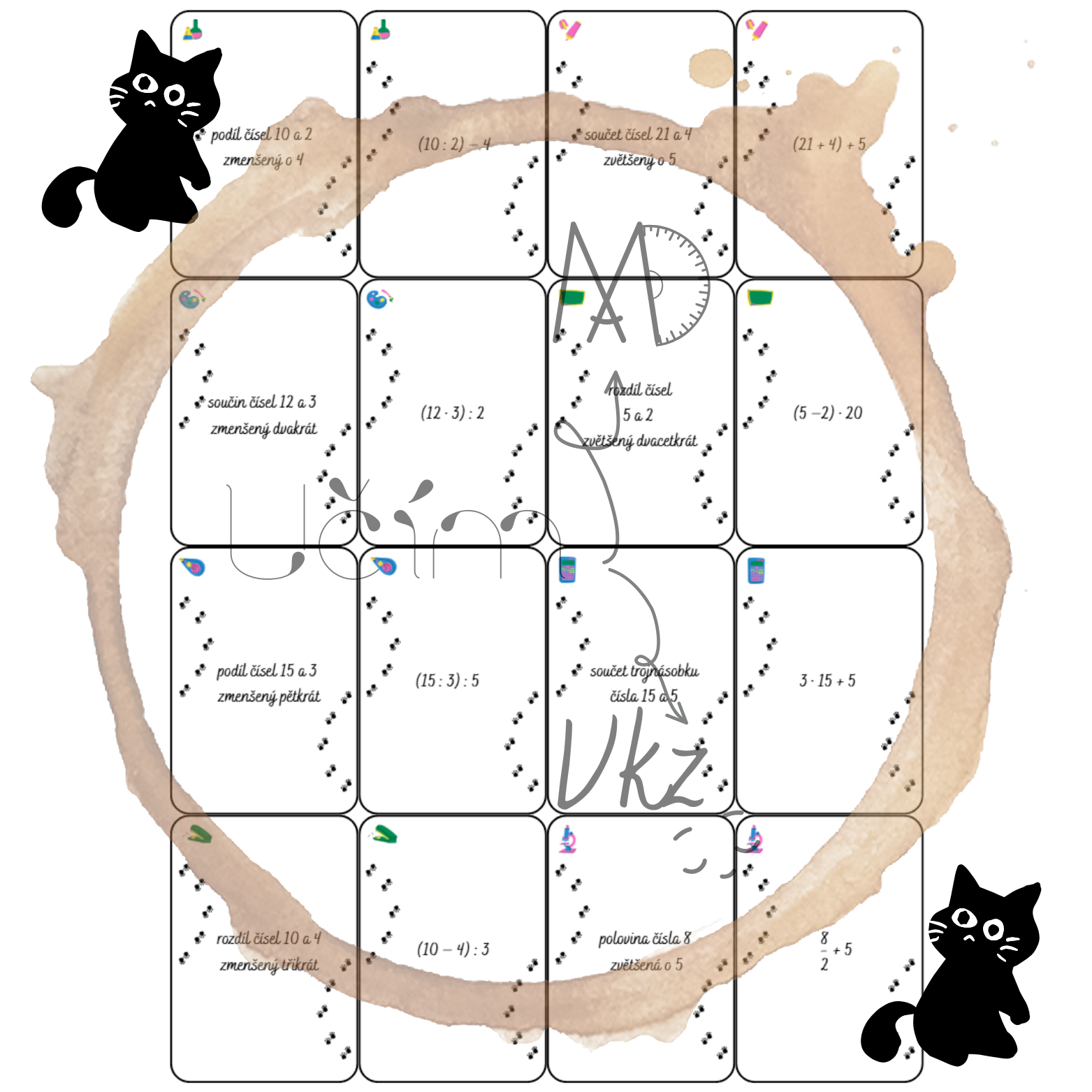 Materiál je primárně pro žáky 2. stupně ZŠ a slouží k zábavnému procvičení slovního zadání výrazů.