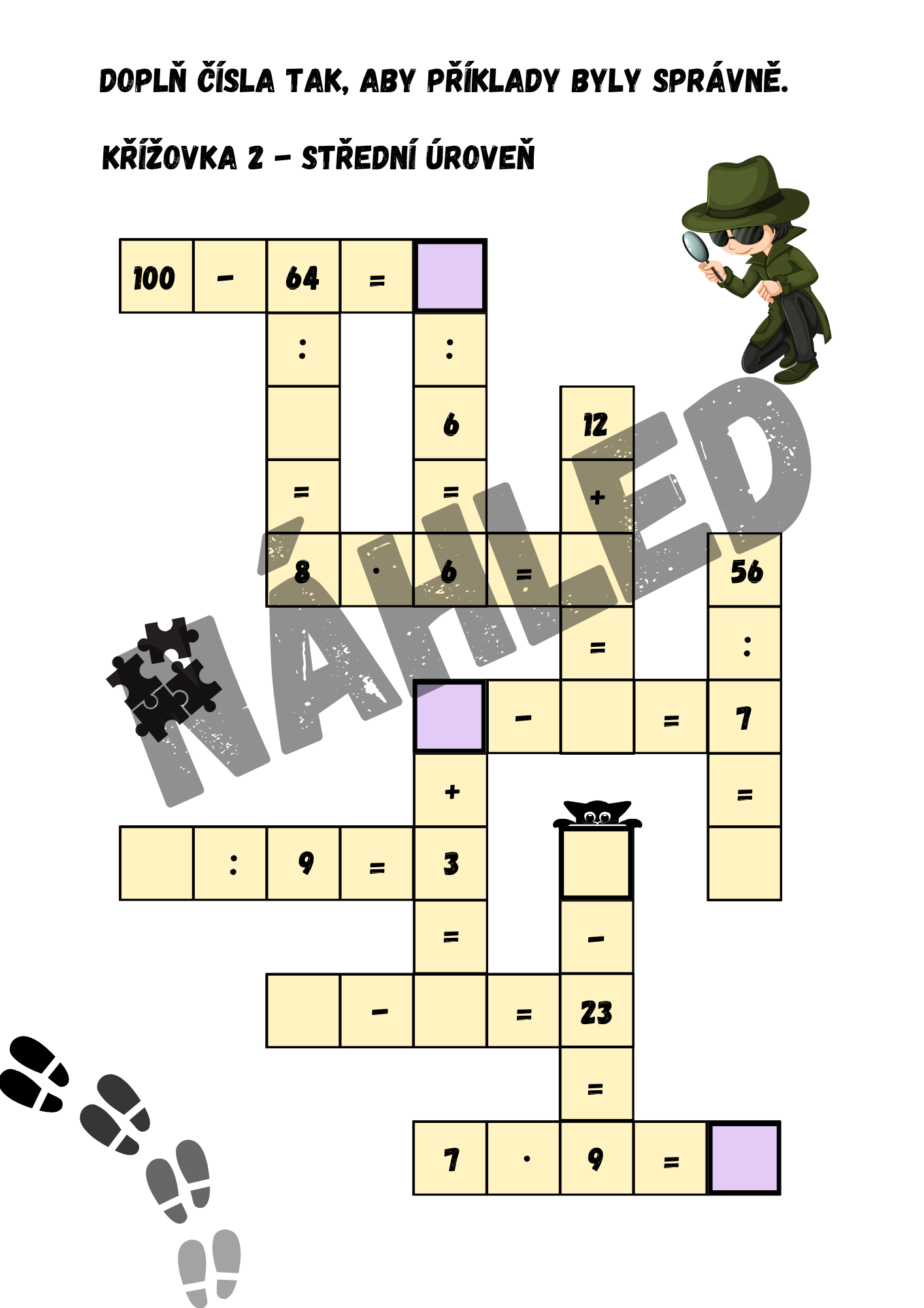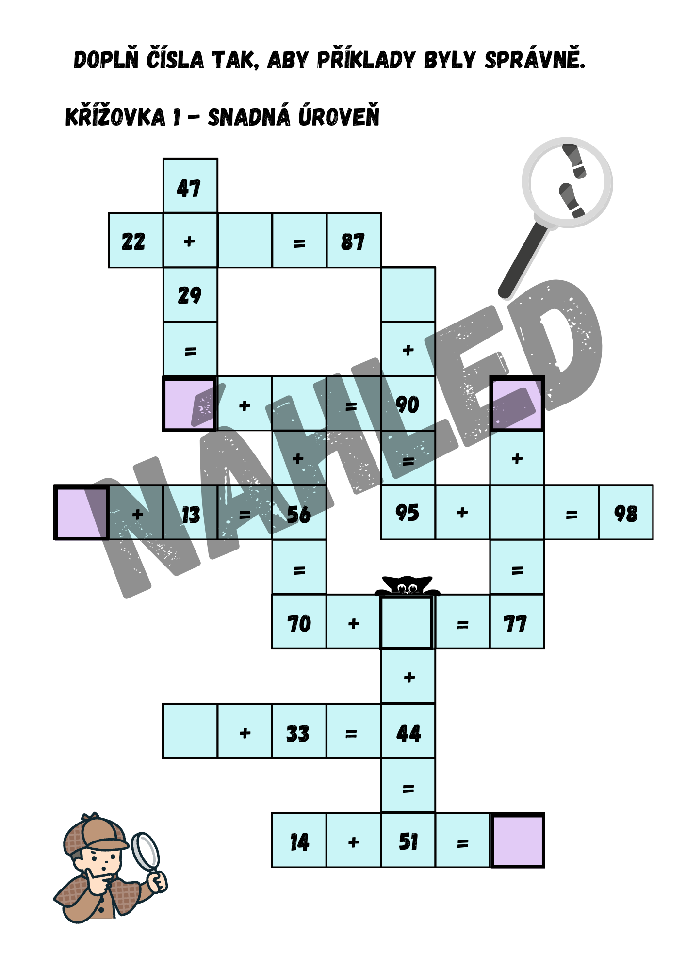 - 4 originální matematické křížovky (sčítání, odčítání, násobilka)