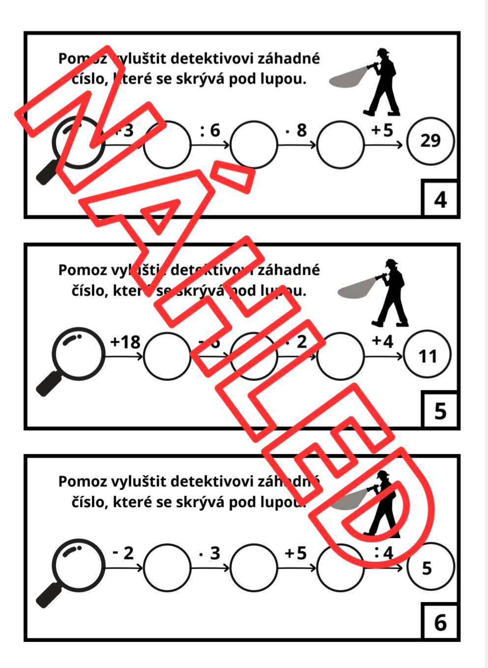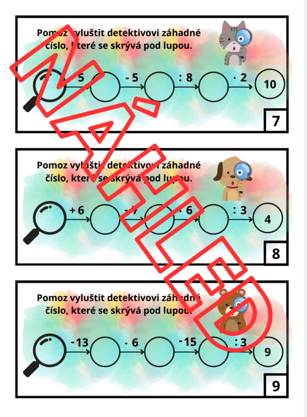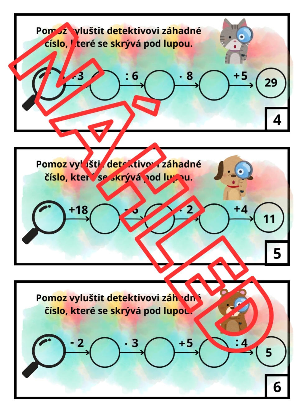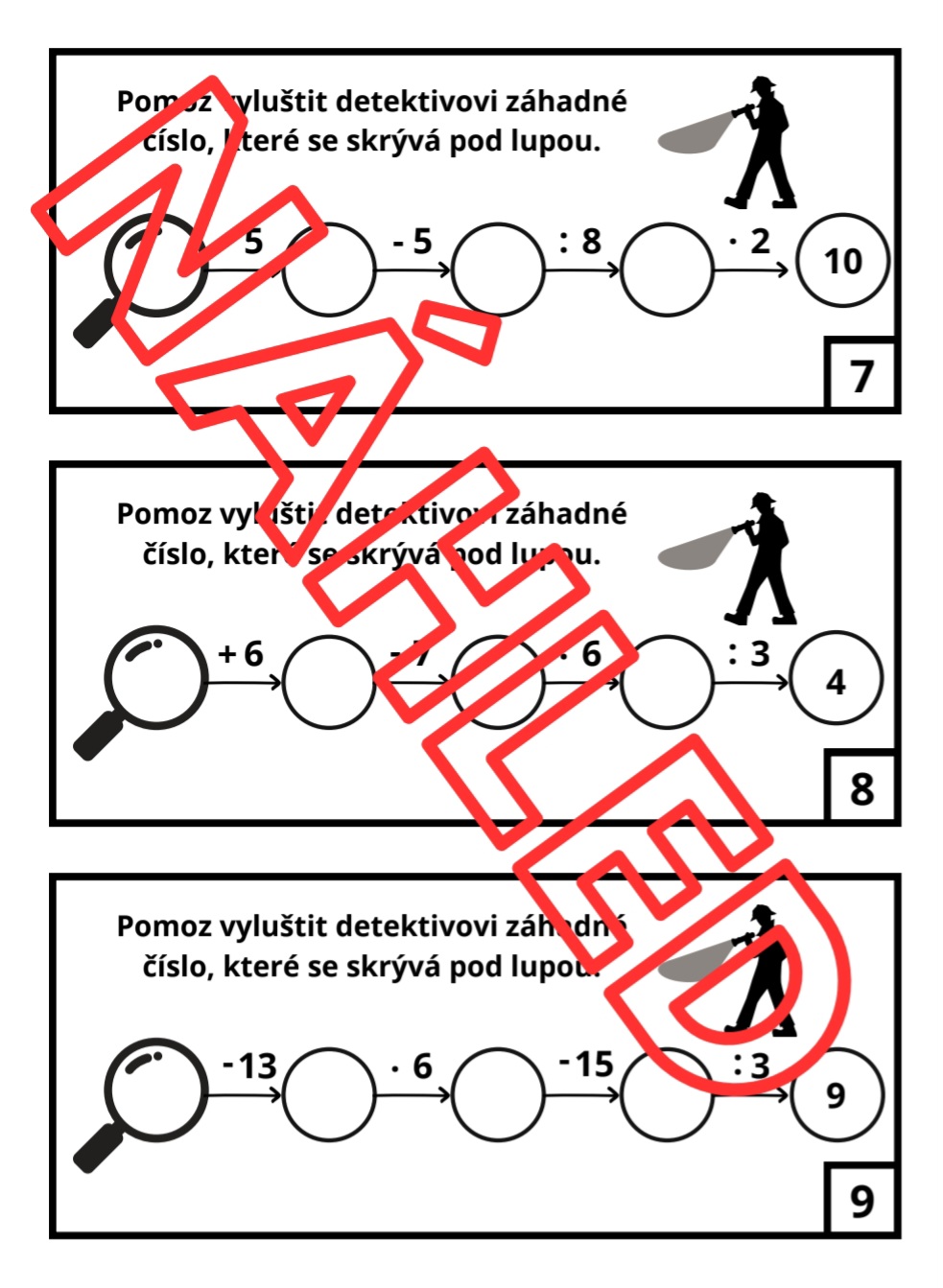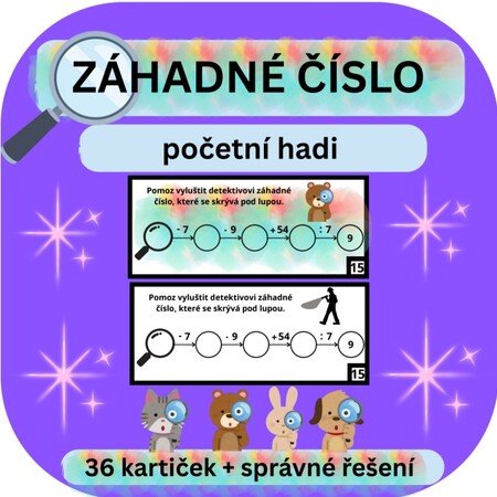 Soubor obsahuje 36 kartiček a správné řešení. Kartičky jsou ve dvou barevných provedeních – barevném a černobílém. Lze s nimi pracovat s celou třídou, ideální jsou také pro „rychlíky“. Kartičky jsou primárně vytvořeny pro žáky 4. a 5. třídy, mohou však posloužit i pro „rychlíky“ ve 3. třídě.