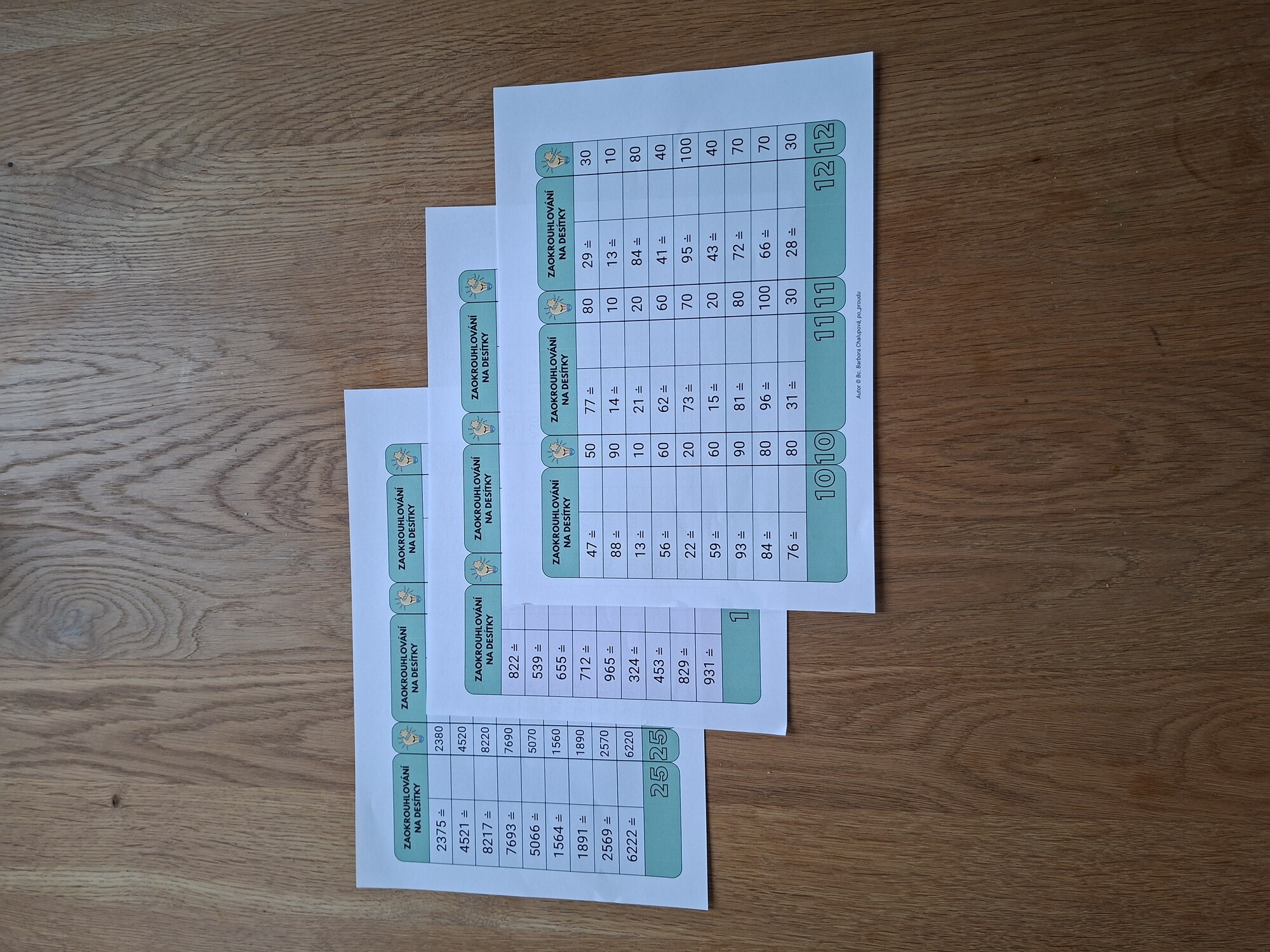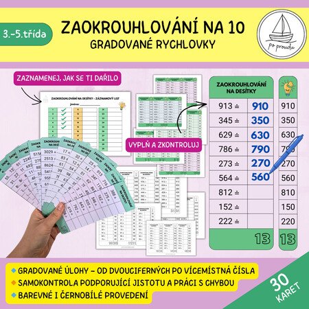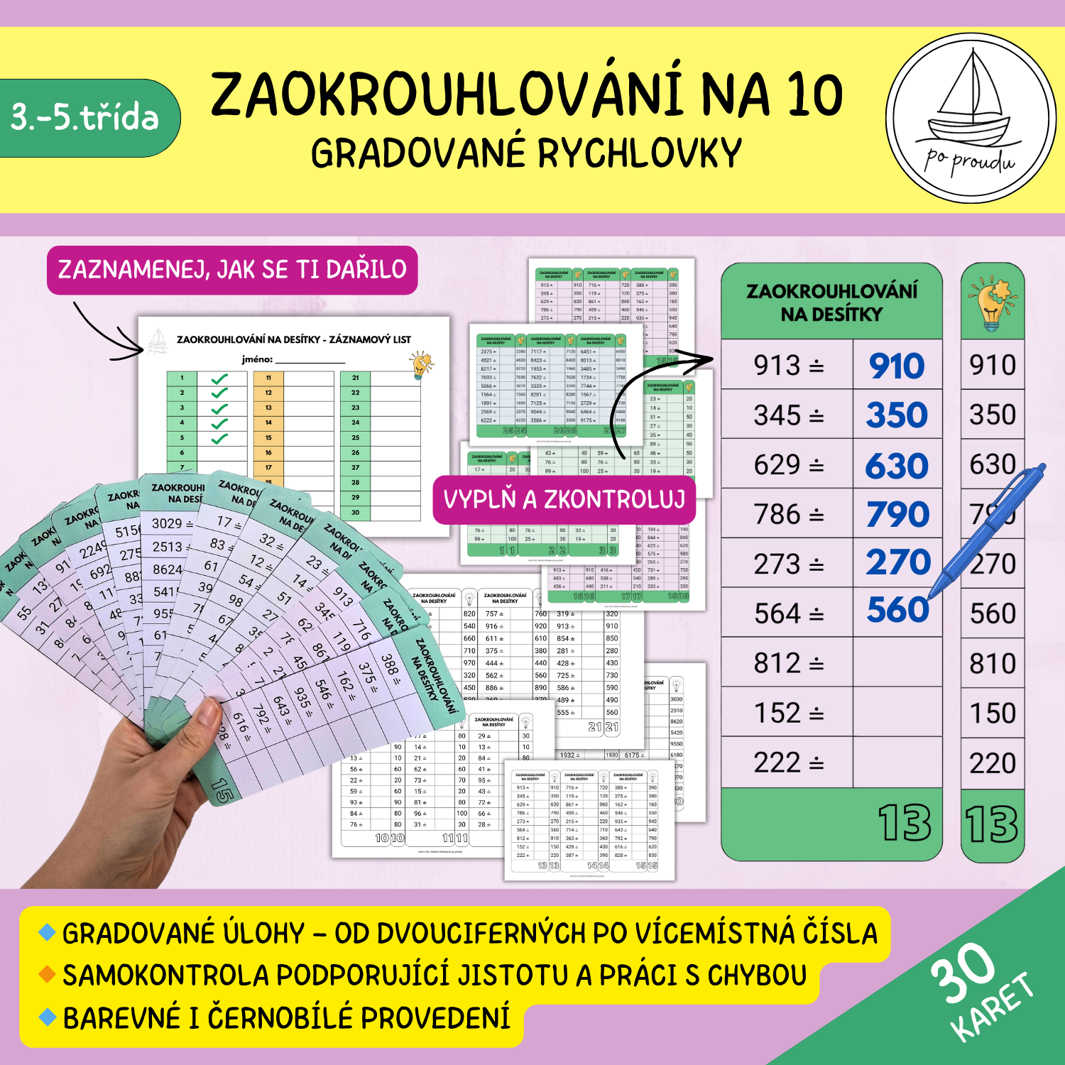Praktický materiál, který žákům pomáhá upevnit princip zaokrouhlování na desítky. Vhodný pro samostatnou práci, procvičování i krátké pětiminutovky během výuky. 💡