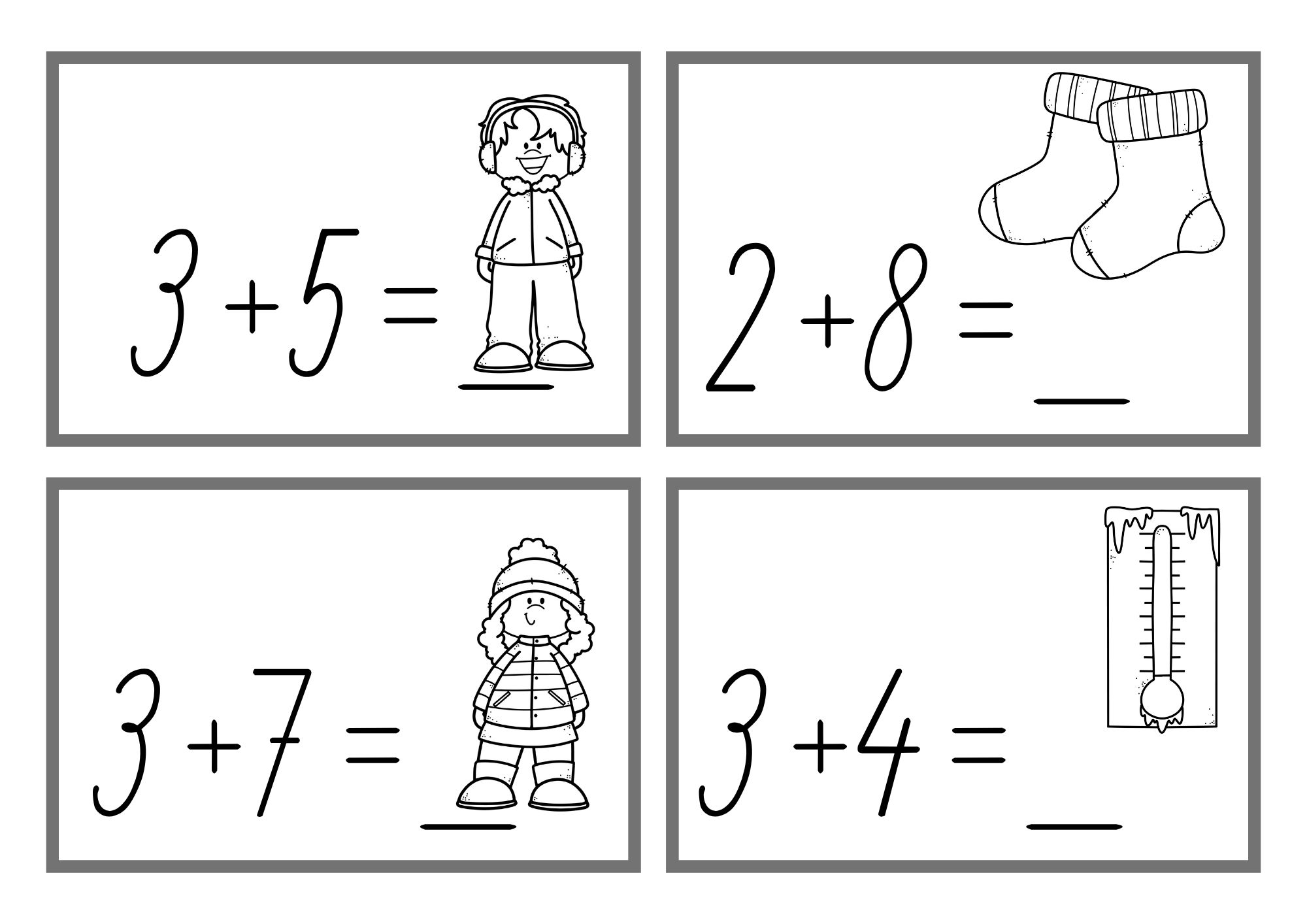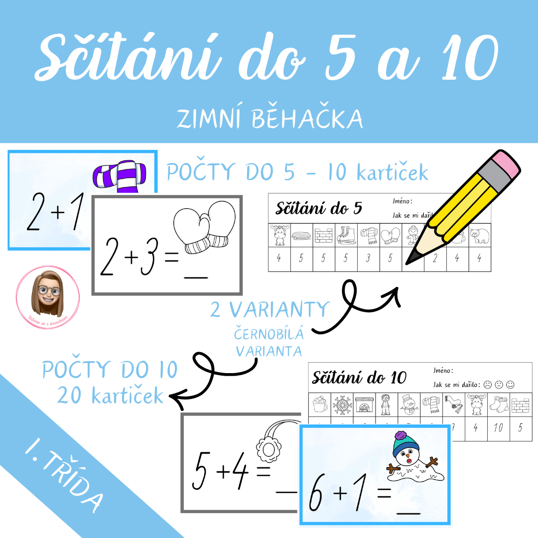 Soubor plný zimních ilustrací a jednoduchých příkladů skvěle procvičí sčítání do 5 a do 10 hravou formou. Děti hledají kartičky po třídě, zapisují výsledky do záznamového archu a mohou si kontrolovat správnost pomocí přiložených řešení. Materiál podporuje logické myšlení, soustředění, spolupráci i radost z pohybu.