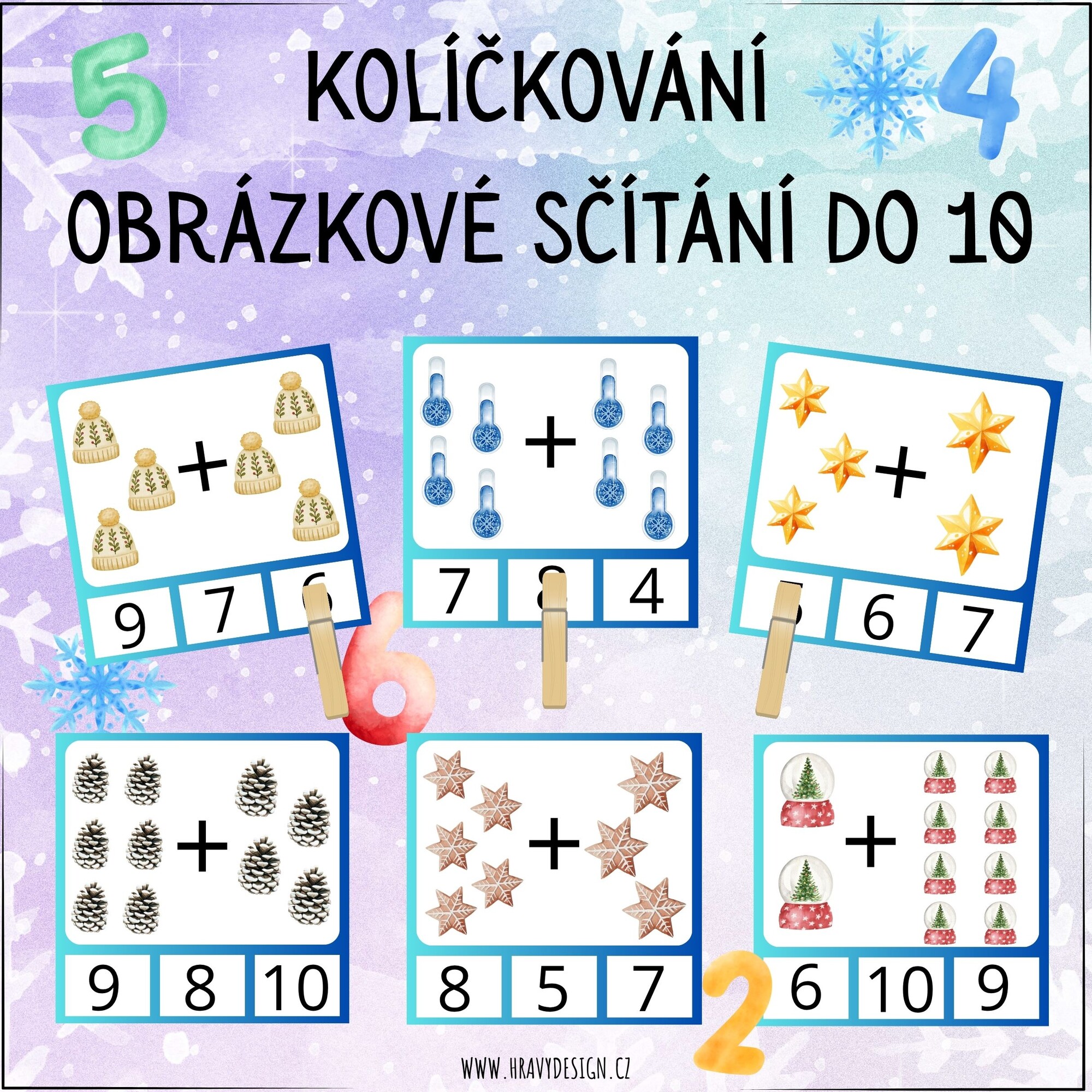 Obrázkové sčítání do 10 – zimní kolíčkování