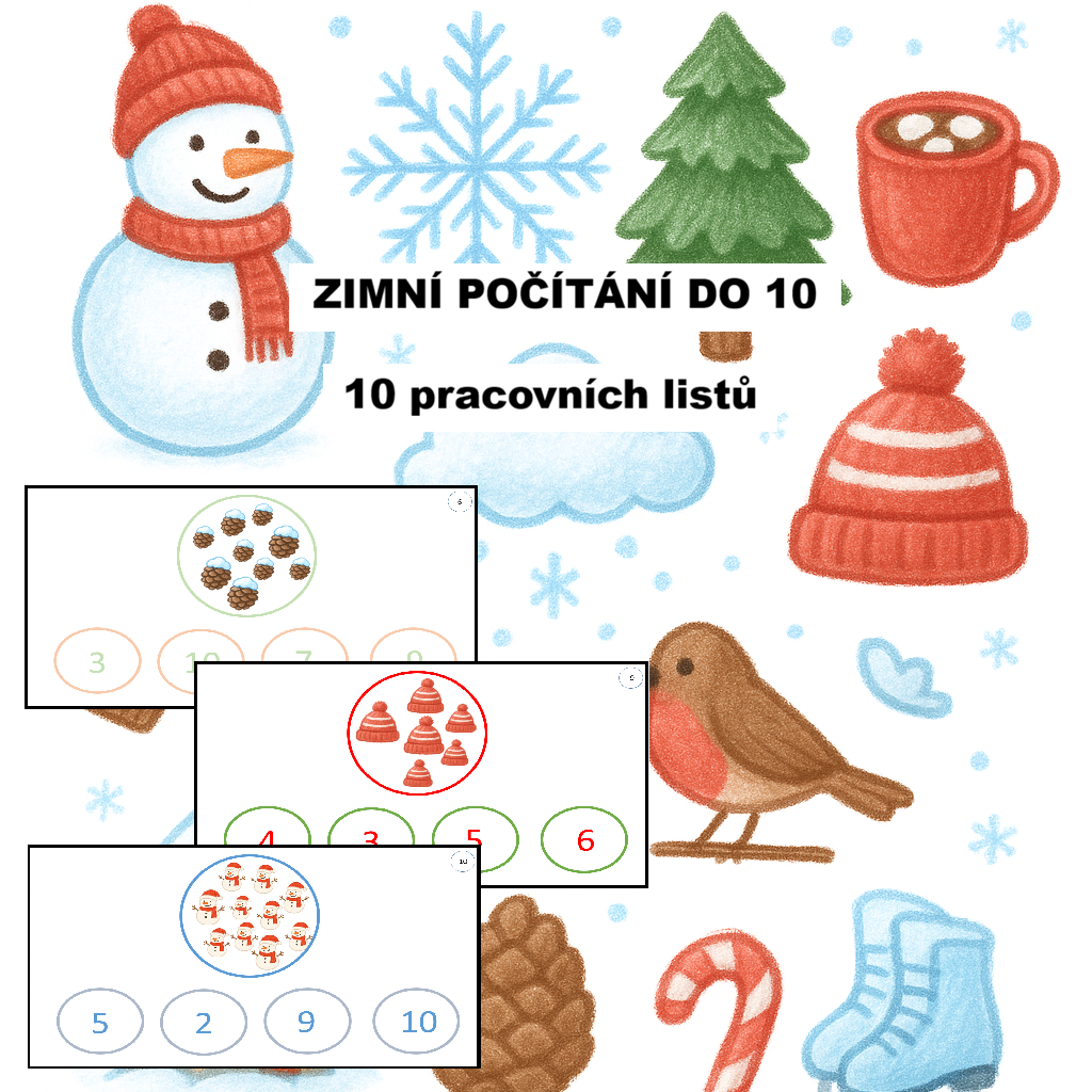 - Na každém pracovním listu jsou obrázky, které dítě počítá (vždy do 10)
