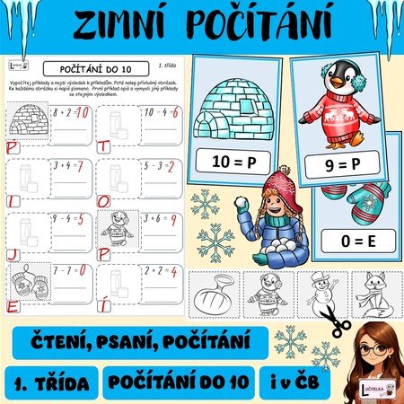 Materiál najdete v barevné i černobílé variantě. Materiál rozvijí i jemnou motoriku – stříhání a lepení. Materiál je určen převážně pro první třídu.