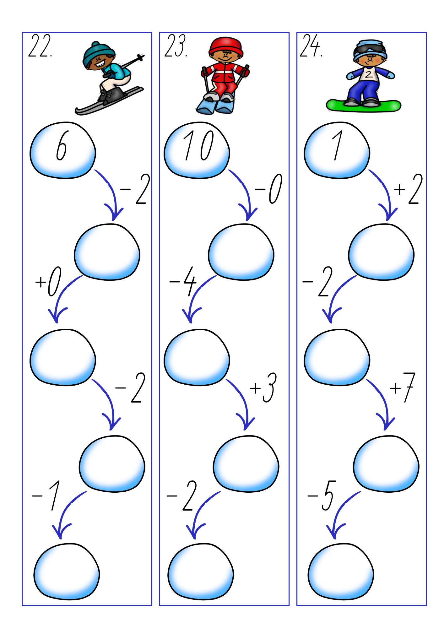 Soubor obsahuje 30 kartiček s řetězovými příklady do 10 a 30 kontrolních kartiček s řešením. Děti procvičují sčítání a odčítání hravou formou a rozvíjejí logické myšlení.