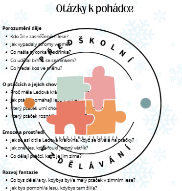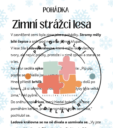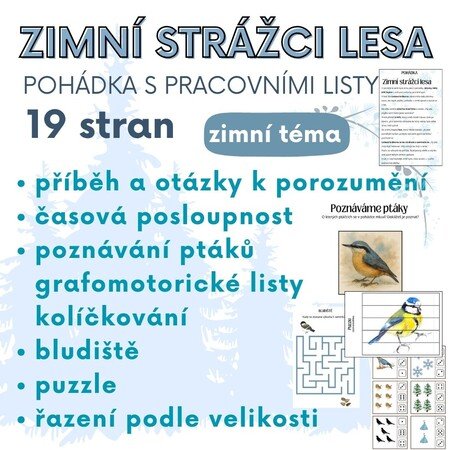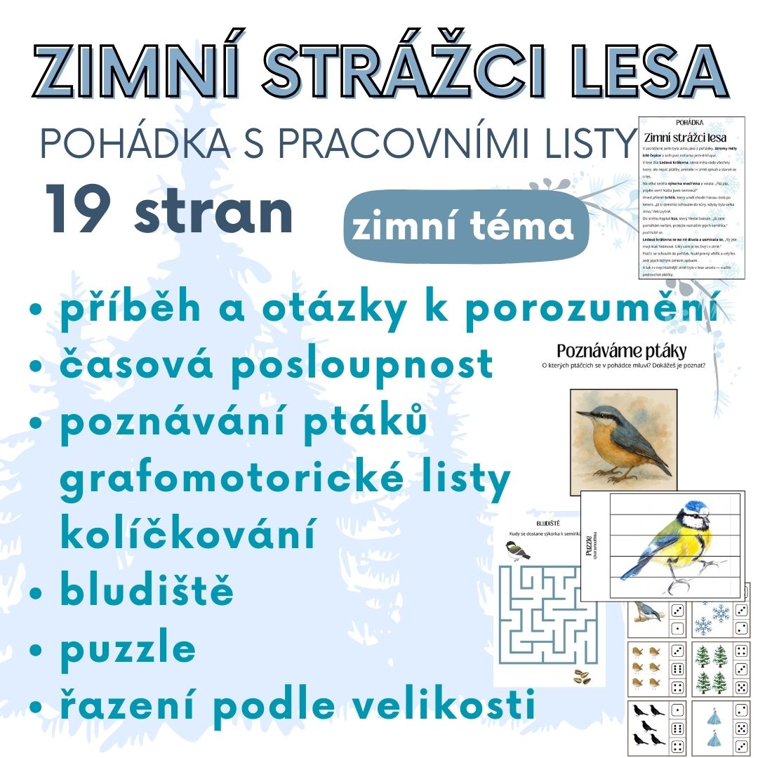 Vzdělávací materiál pro děti 3–6 let založený na autorské zimní pohádce Zimní strážci lesa.