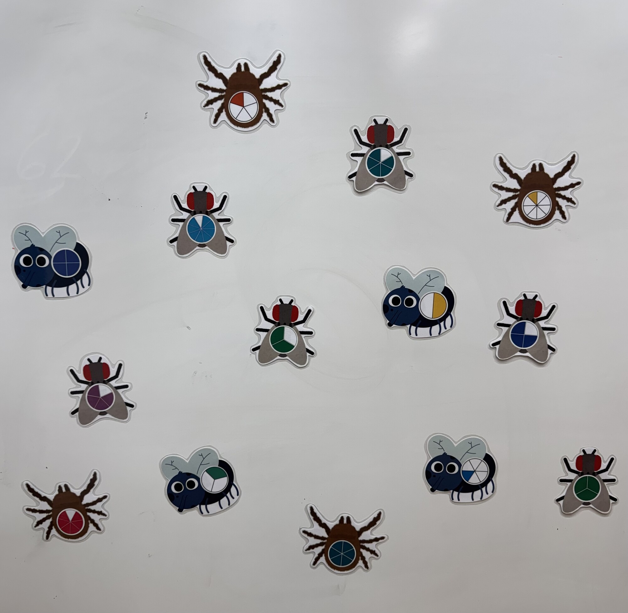 1. Učitel ukazuje zlomek/příklad - žáci plesknou správný hmyz na tabuli.