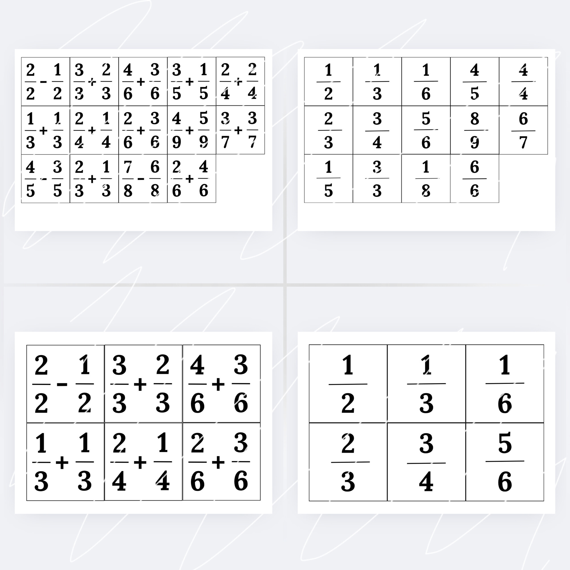 14 kartiček se zápisem zlomku (pro názornou ukázku při hře plácaná - pro začátek)