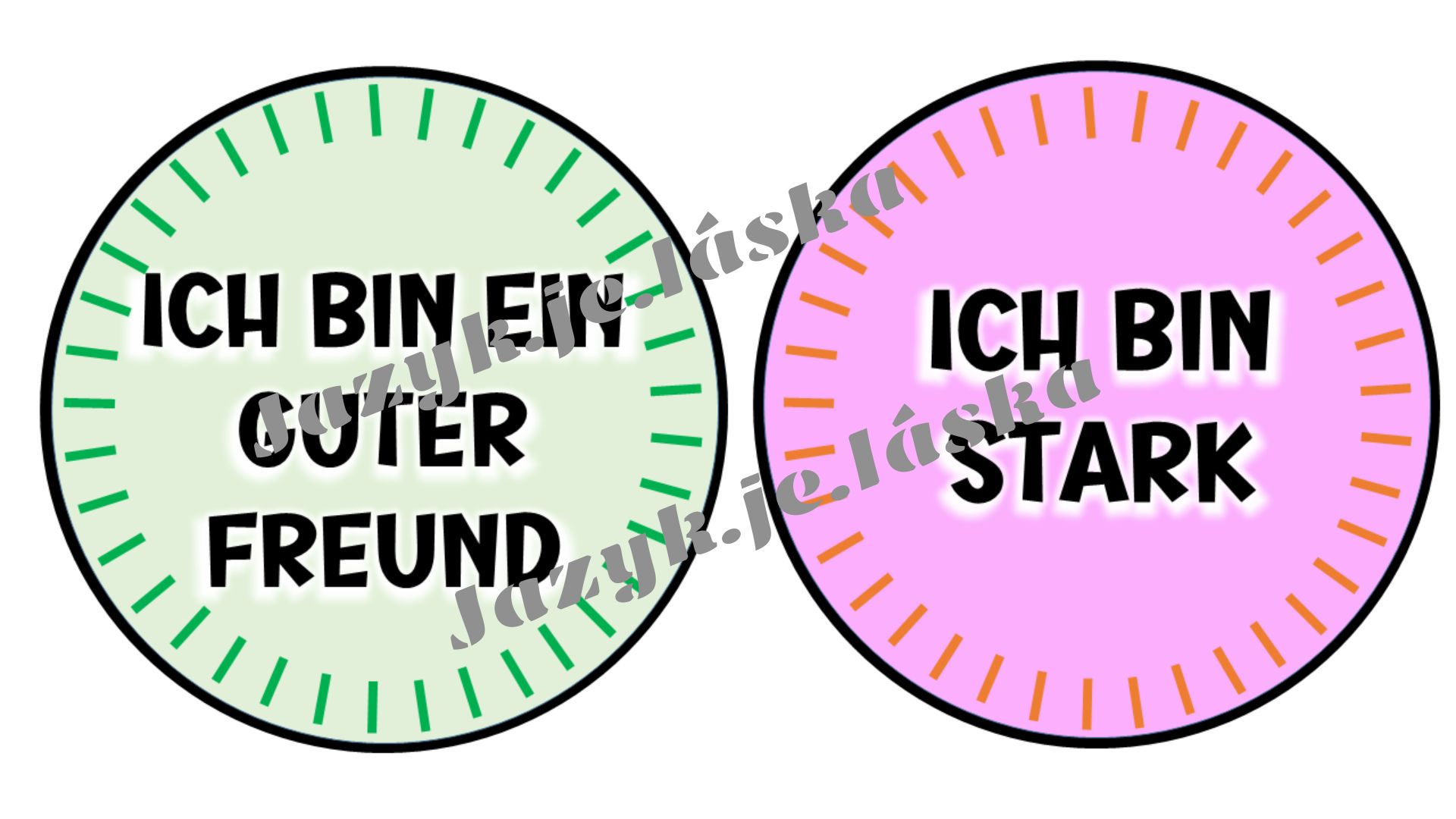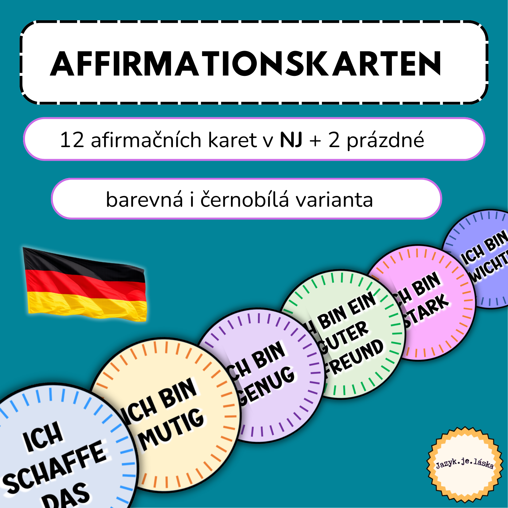 Soubor 12 afirmačních kartiček v NJ vhodných jako výzdoba školní třídy. Kartičky jsou zaměřené na podporu sebedůvěry, motivace a pozitivního klimatu ve třídě. Lze je využít při ranním kruhu, třídnických hodinách nebo jednoduše jako stálou vizuální podporu pro žáky.