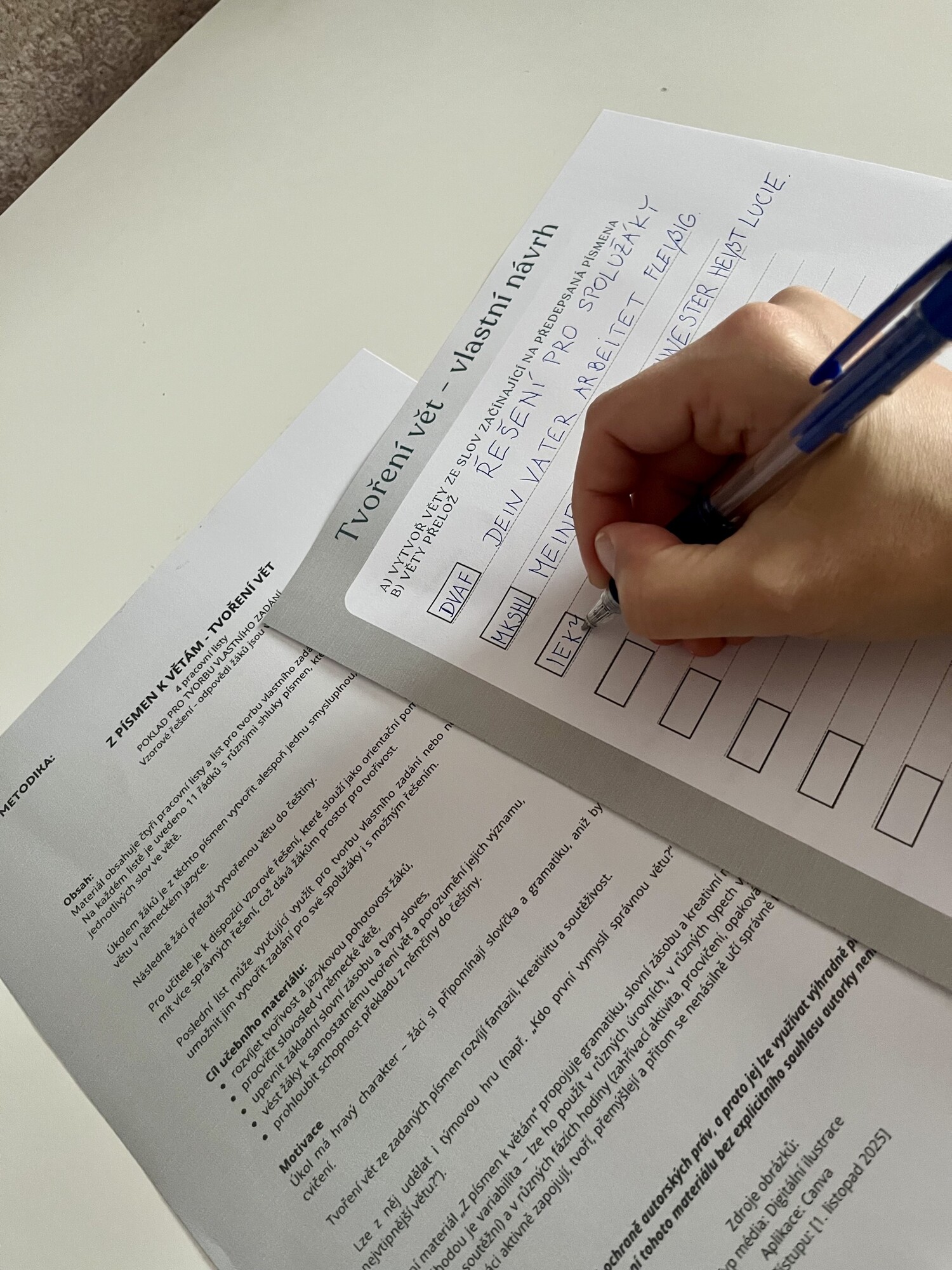 Učební materiál „Z písmen k větám“ propojuje gramatiku, slovní zásobu a kreativní myšlení.