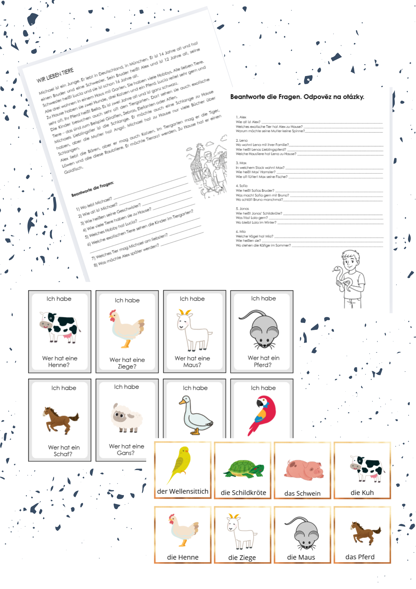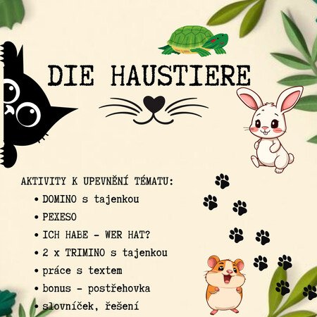 Soubor aktivit k tématu Haustiere - upevnění slovní zásoby německého jazyka :-)