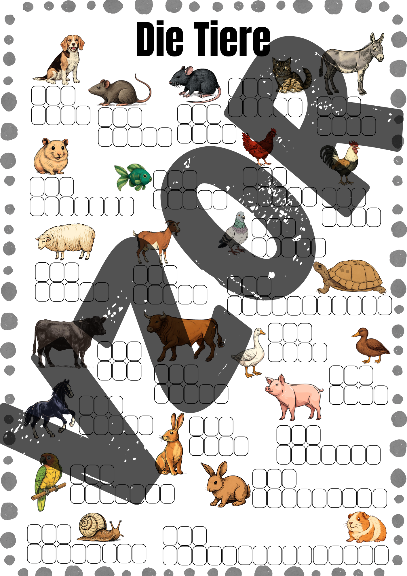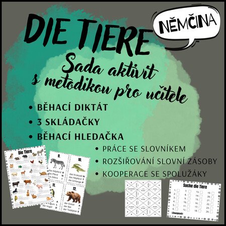 Tento soubor aktivit obsahuje 3 skládačky (Waldtiere, Tiere im Zoo, Tiere auf dem Bauernhof), běhací diktát a běhací hledačku.