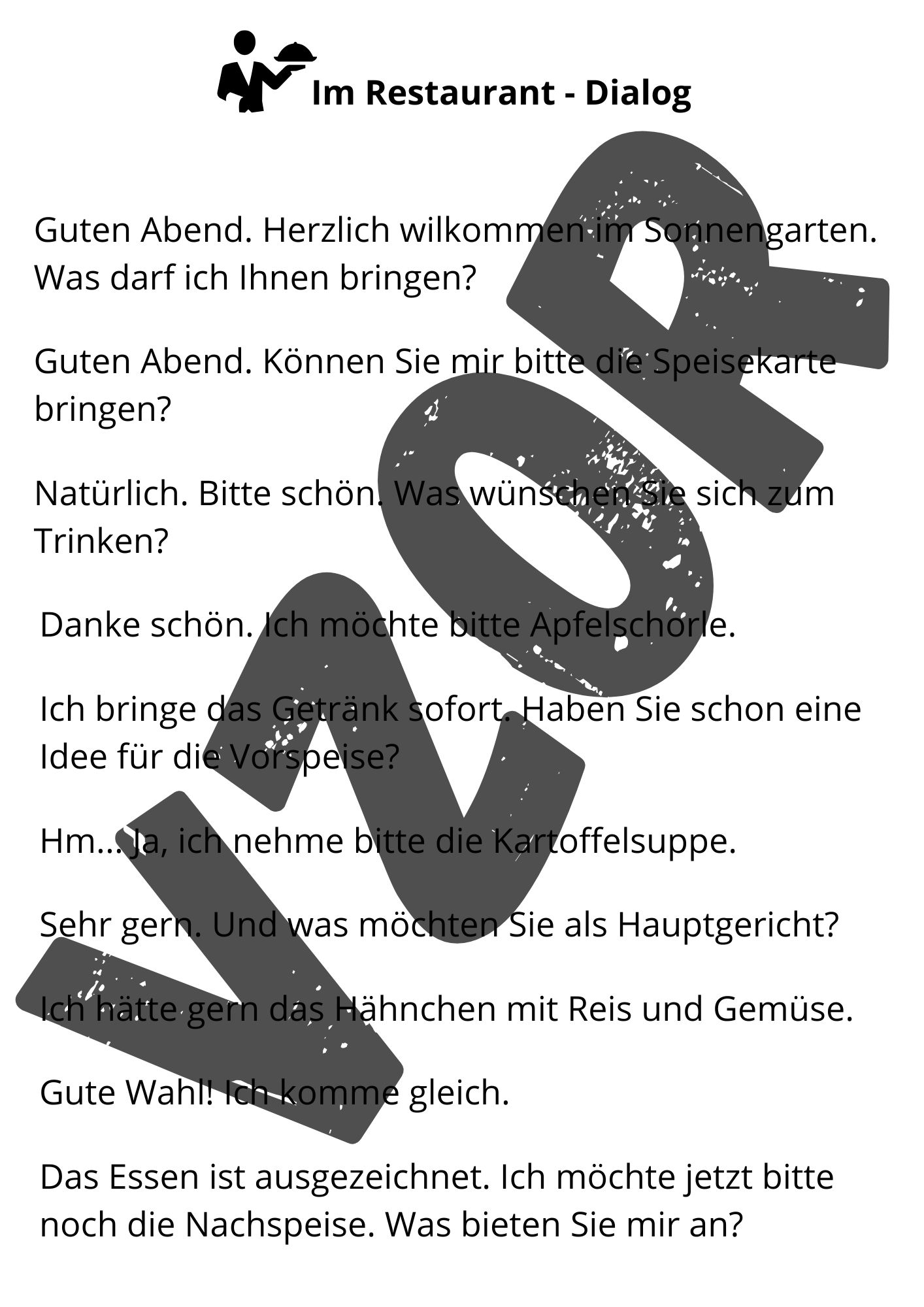 Materiál obsahuje celkem 3 aktivity - skládačku, rozhovor a jídelní lístek. Ve skládačce žáci hledají dvojice, a postupně tak skládají obdélník s tajenkou na okraji. V rozstříhaném rozhovoru musí žáci správně seřadit promluvy, jak by měly jít za sebou. A samotný jídelní lístek je pak pomyslně zavede do restaurace, kde si mohou trénovat konverzaci v roli číšníka a hosta.