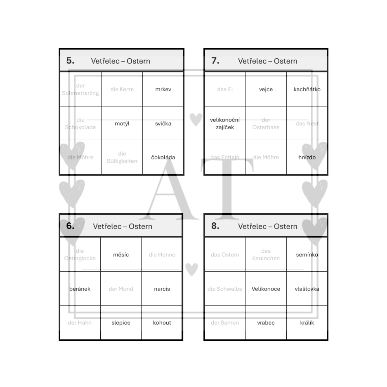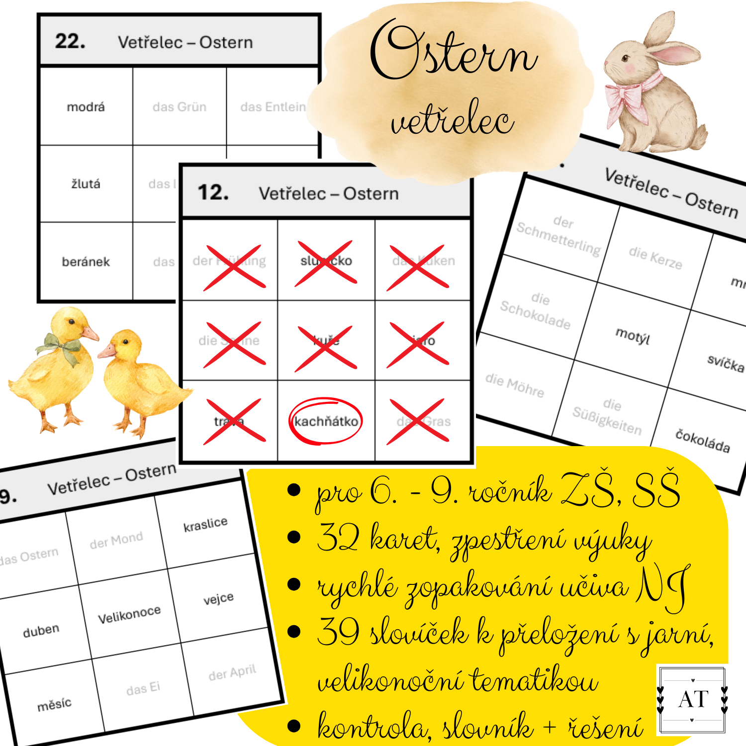 Hra vetřelec slouží k rychlému zopakování německé slovní zásoby vztahující se k jaru a Velikonocím. Je vhodná pro 6. - 9. třídu ZŠ, SŠ a víceletá gymnázia.