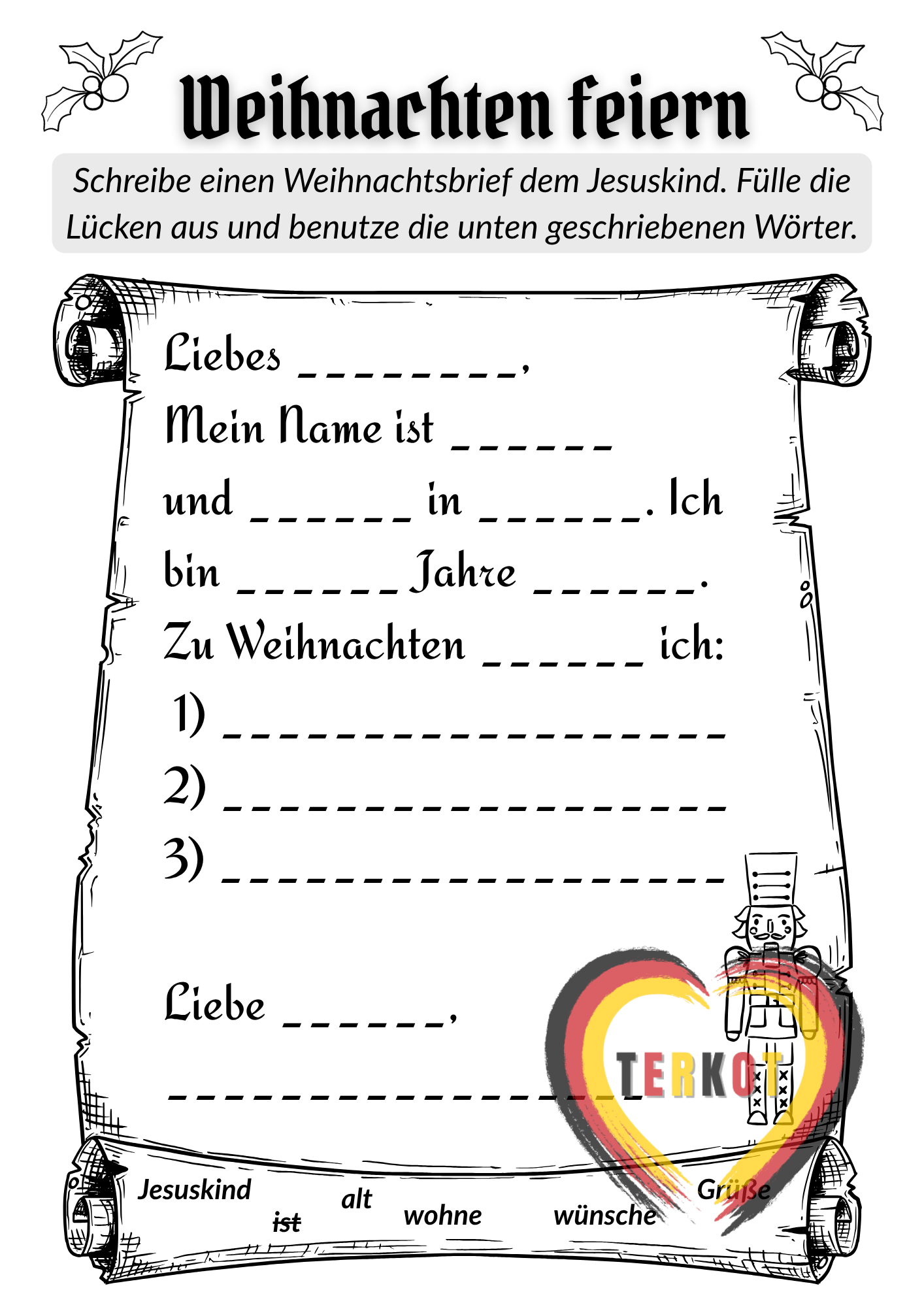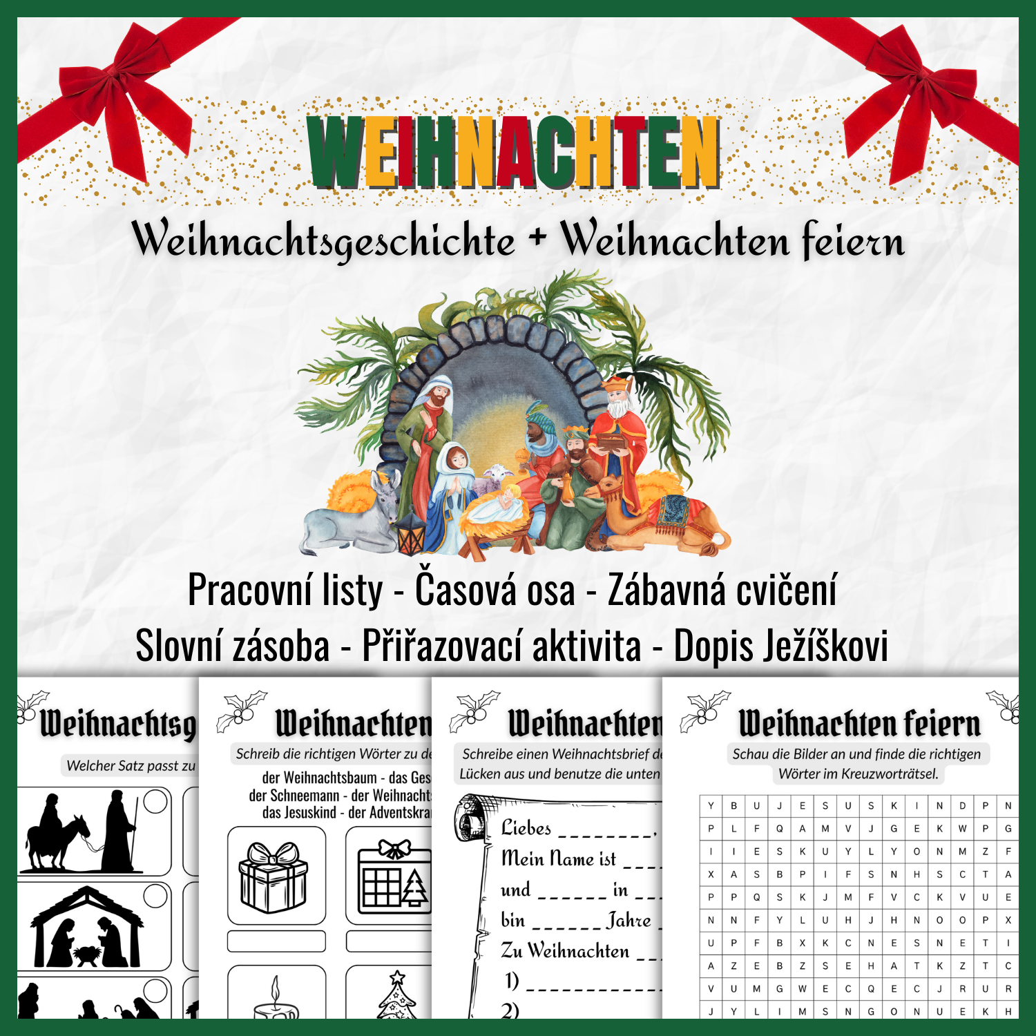 Tento materiál je určen pro žáky 2. stupně ZŠ nebo středoškoláky, kteří začínají s němčinou. Hlavním tématem je zde Weihnachtsgeschichte, tedy příběh o narození Ježíše. Žáci začínají s úvodními pracovními listy, kde si osvojí potřebnou slovní zásobu a ujasní si pořadí scén tohoto starého příběhu. Navazuje potom vyvrcholení tohoto projektu, kdy žáci z obrázků sestaví příběh o narození Ježíše a doplní ho o popisné věty. Věty jsou ve dvou úrovních, dle znalostí žáků. Doporučuji práci v menších skupinkách (obrázky formátu A5) a následně společná kontrola s učitelem na tabuli/koberci (obrázky formátu A4).